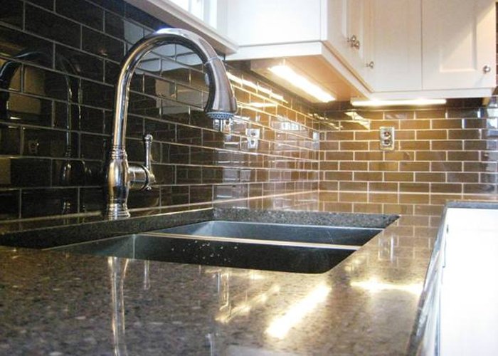 Superficie brillante. Las baldosas con textura no son adecuadas para delantales. La presencia de un alivio complicará la limpieza, ya que la grasa y la suciedad se obstruirán en huecos poco profundos.