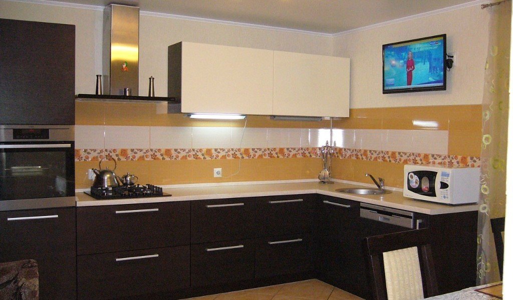La baldosa cerámica es líder entre los materiales de acabado para la cocina. El azulejo tiene alta resistencia, durabilidad y no muestra sensibilidad al ambiente agresivo de una habitación donde constantemente se prepara algo. Un delantal de cocina es un área separada ubicada entre los gabinetes superiores (estantes) y el fregadero, la estufa y la encimera. Esta área es considerada la más "problemática", es aquí donde se encuentra el mayor nivel de contaminación. Gotas de agua, grasa, salpicaduras de la comida preparada en la estufa, todo esto se deposita en el delantal de la cocina. Además, es fácil golpearlo accidentalmente con una tapa o cucharón durante la cocción. Debido a esto, el área no se puede terminar con un recubrimiento convencional. El material debe ser duradero y no temer a los detergentes. El diseño de un delantal de cocina generalmente se realiza con baldosas cerámicas. Este recubrimiento proporciona no solo una protección confiable para el área problemática, sino que también le permite crear un acento en el interior, su entusiasmo. Considere las ventajas de los delantales para una cocina hecha de azulejos, sus características y métodos de colocación de material.