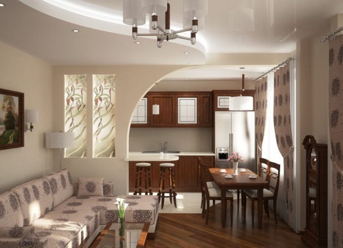 Las cocinas combinadas son típicas principalmente para apartamentos tipo estudio. Sin embargo, en Jruschov, tal patrón parece ser una necesidad más que una técnica de diseño. Recientemente, tal "transformación" se ha vuelto muy popular.En el proceso de cálculos y mediciones preliminares, se selecciona el diseño más ergonómico de los elementos de los muebles y se distribuyen los segmentos funcionales. Los muebles en la cocina y en la sala de estar no deben diferir mucho en estilo. La combinación de estas salas traerá una serie de cambios positivos. En primer lugar, será más conveniente moverse por el apartamento.