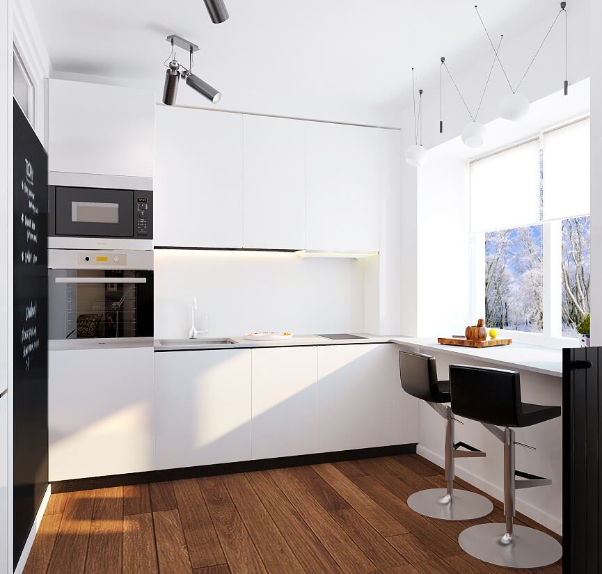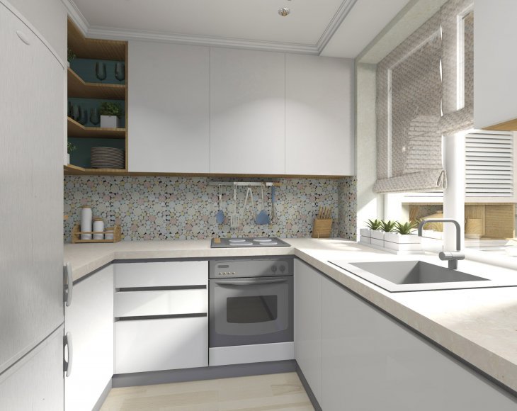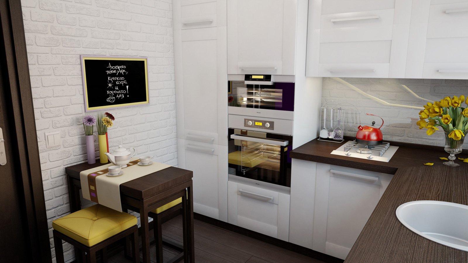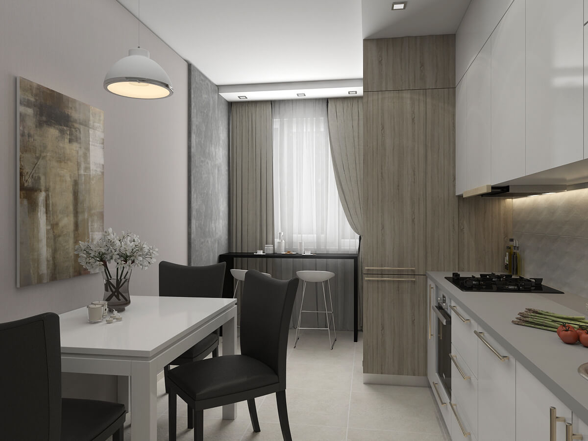 El espacio de la cocina se puede optimizar seleccionando muebles o cambios en el diseño del apartamento.