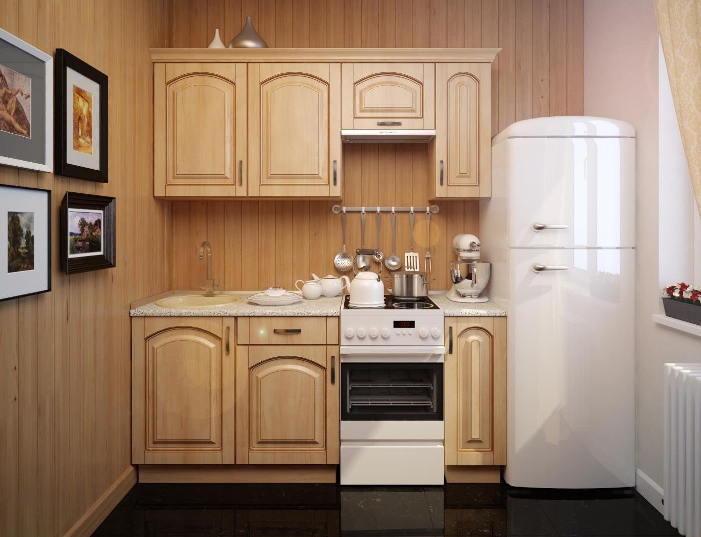 Esta es una versión clásica con una disposición sencilla de todos los muebles de cocina. El refrigerador se coloca a la par con el resto de los elementos o por separado. En la cocina de Jruschov, ese diseño no será lo más conveniente, pero una pequeña pared será útil. Además, al reconstruir un apartamento, puede aparecer un lugar adicional para auriculares. Una pequeña pared lineal es adecuada para quienes cocinan un poco, así como para familias jóvenes que aún no tienen hijos, ya que necesitarán un mínimo de utensilios de cocina. Un conjunto directo dejará muchas opciones para colocar otros muebles, por ejemplo, un sofá de esquina y una mesa grande.Hay una gran selección de muros lineales en venta; no necesita hacer un pedido individual y esperar varios meses para que se fabrique. Las fachadas de línea recta tienen una configuración simple y, en consecuencia, cuestan menos.