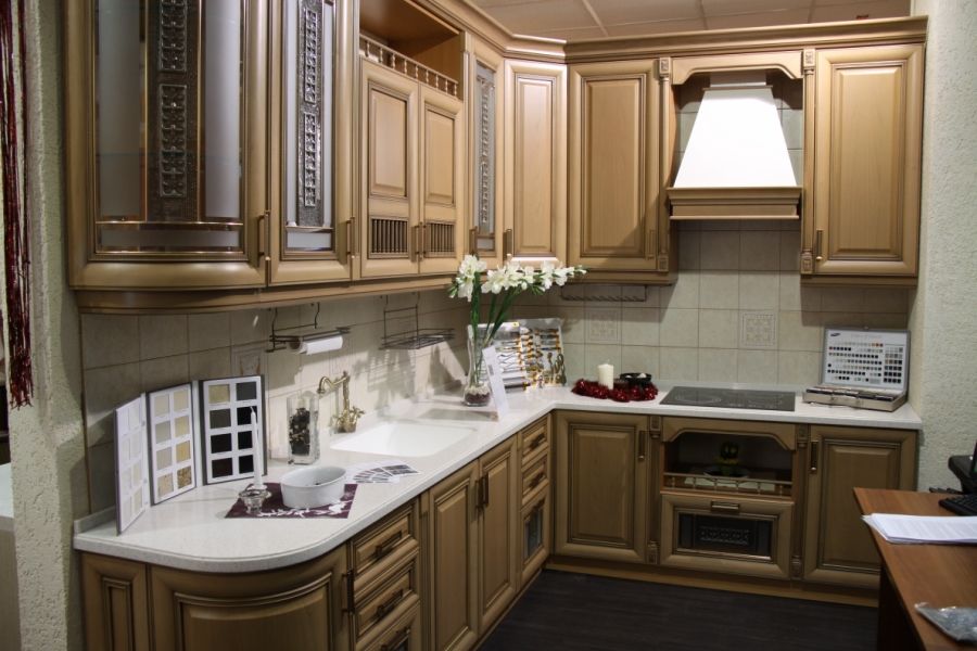 El estilo clásico requiere atención a los detalles individuales y es muy limitado en términos de selección de materiales y colores. La versión estándar de la cocina en este estilo es un mueble de madera en algunos tonos marrones.