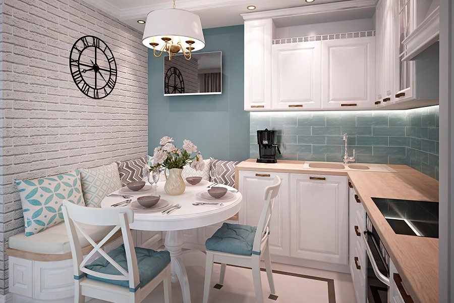 La alta tecnología es otro estilo interesante: el vidrio y el metal serán apropiados en una cocina pequeña. Art Nouveau se caracteriza por amplios bloques de auriculares, electrodomésticos integrados, diversidad de colores y un número mínimo de detalles. El estilo provenzal es muy similar al país americano y es típico en la provincia francesa. Sin embargo, está muy extendido en todo el mundo. Esta es una de las mejores opciones para decorar una cocina pequeña. La presencia de una gran cantidad de cerámica y textiles en la superficie es bienvenida. La paleta de colores debe contener colores pastel apagados. El objetivo principal de un interior minimalista es la comodidad y el orden. Los muebles se seleccionan con formas simples de línea recta, idealmente lisas.