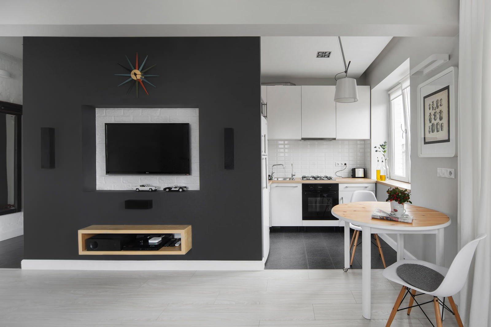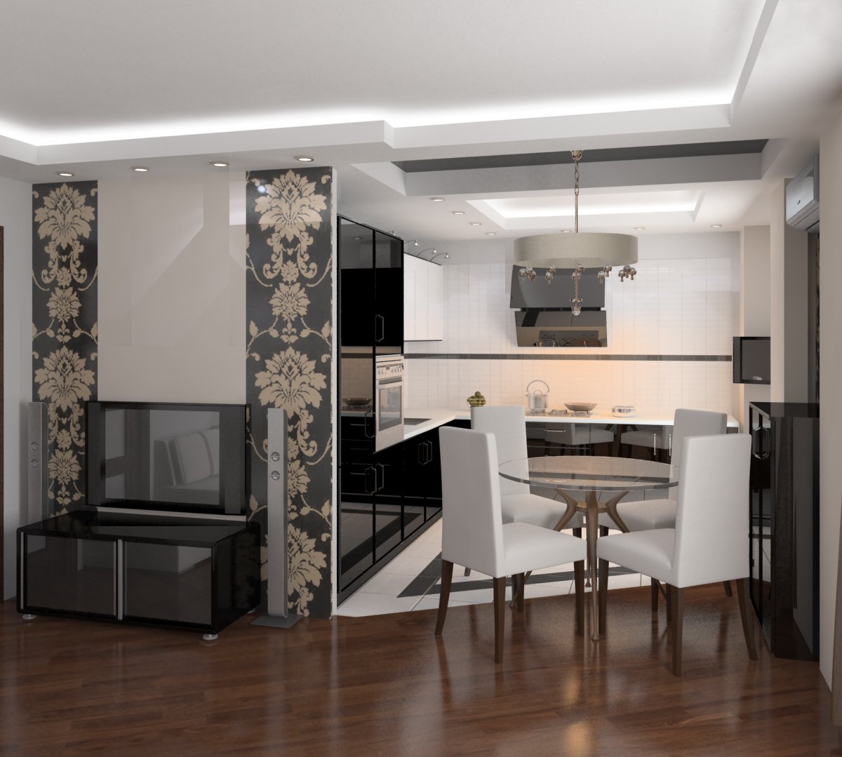 Otra ventaja es la capacidad de transferir el área de comedor desde la cocina al lugar donde va a la sala de estar. También vale la pena señalar que mientras cocina es más fácil hacer un seguimiento de los niños. Las principales desventajas son el aumento de los niveles de ruido y la propagación del olor en la habitación. Puede deshacerse de estos momentos desagradables de la siguiente manera: