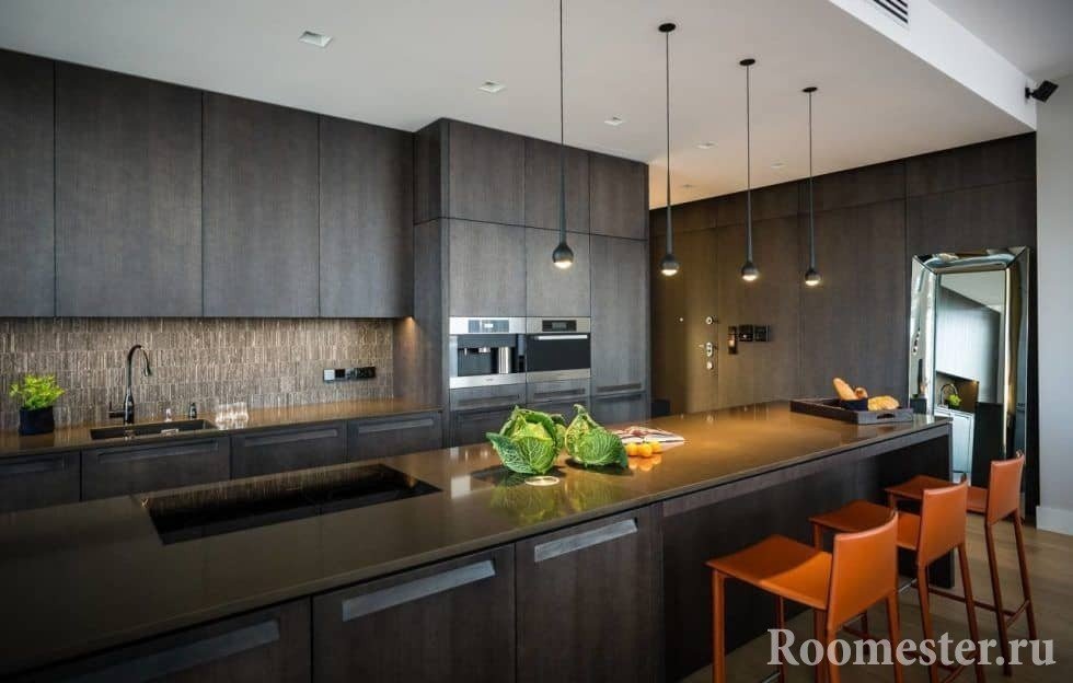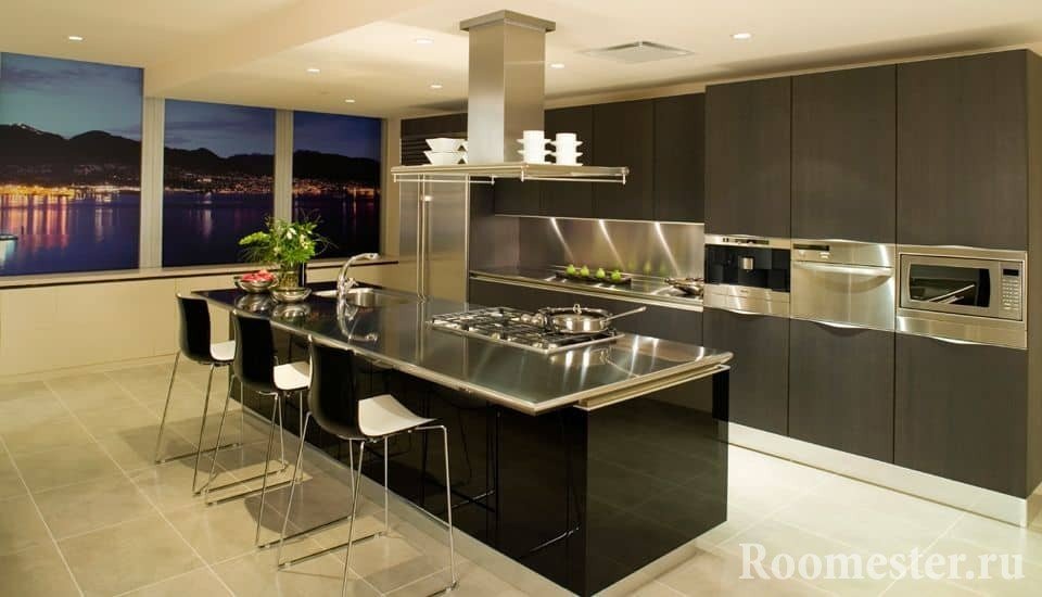 A pesar del minimalismo y la tecnogenicidad, el diseño de la cocina en este estilo no pretende ser aburrido, monótono. Esto es energía, ritmo, temperamento de toda la casa.