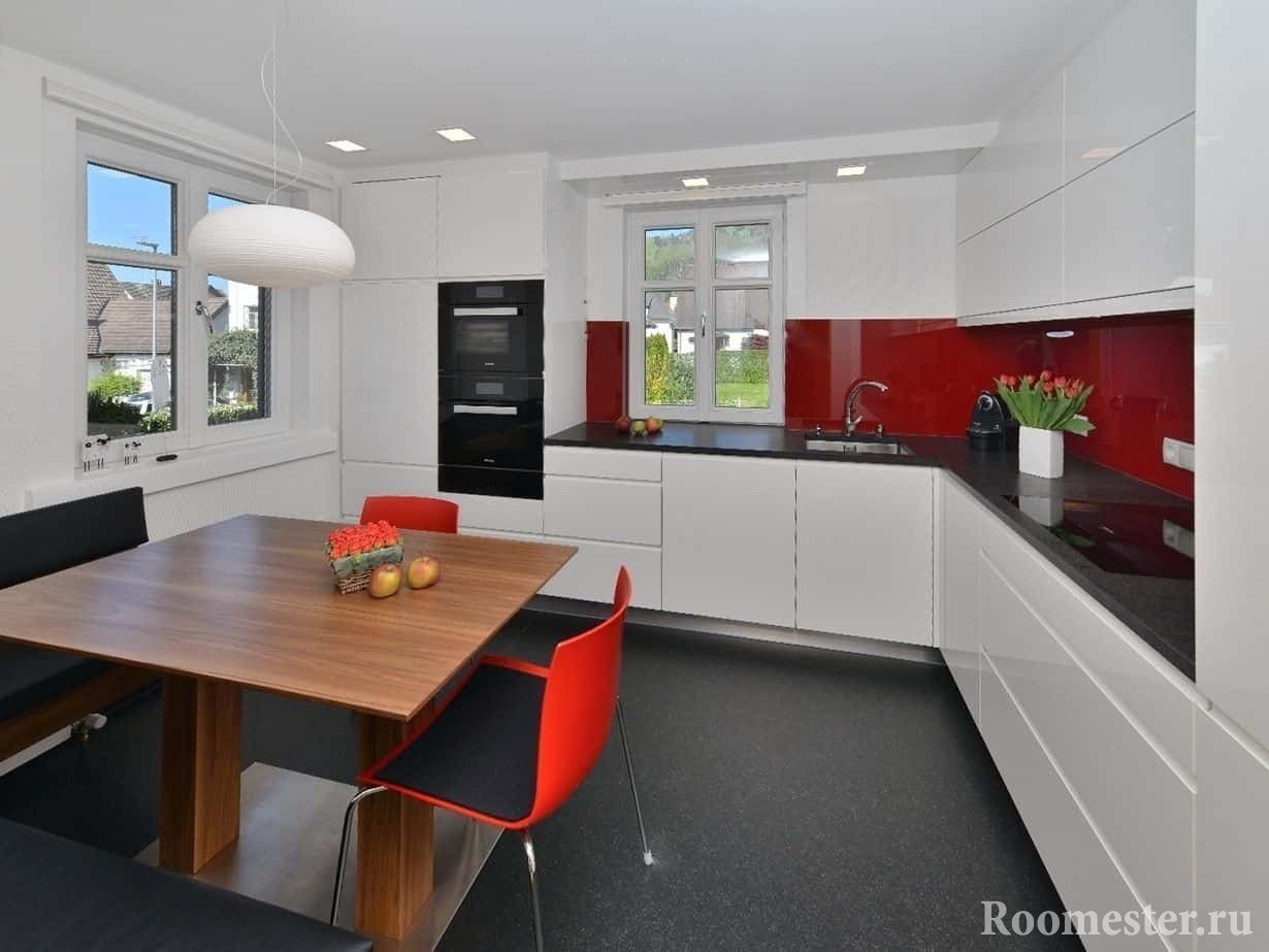 El esquema de color de la cocina de alta tecnología es elemental, hay tonos exactos, sin semitonos de gradientes, adornos. La base es blanca, negra, gris. Es esta gama la que enfatiza perfectamente la idea de alta tecnología. Aunque se permiten algunas excepciones.