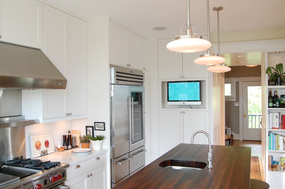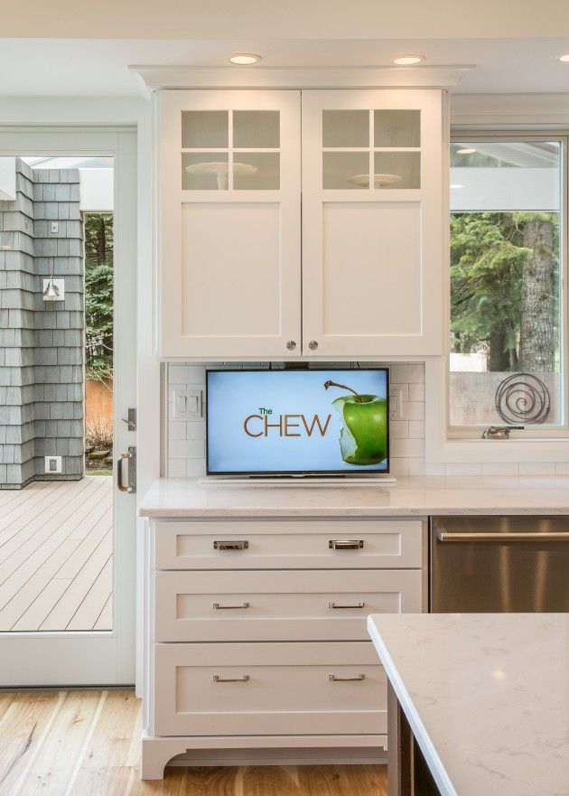Es difícil imaginar una cocina moderna sin TV. Puede ser viejo y pequeño, pero siempre presente. Por lo general, lo colocan en el refrigerador o en el alféizar de la ventana, pero esta ubicación no siempre corresponde a la decisión de estilo del apartamento y la cocina. Antes de instalar cualquier equipo en la cocina, debe pensar en todo hasta el más mínimo detalle, consultar con un diseñador y buscar proyectos de diseño listos en la red o en revistas temáticas. Mucho depende del tamaño y la forma de la cocina. Se recomienda planificar la colocación de un panel de televisión en la cocina antes del inicio de las reparaciones o durante la preparación de un proyecto de diseño. Y vale la pena centrarse no solo en las tendencias de moda, sino también en los hábitos. Si una persona está acostumbrada a escuchar noticias o ver películas mientras cocina o come, entonces se debe colocar un panel de televisión grande en la cocina. Cuando no existe ese hábito, un pequeño televisor es adecuado para la cocina.