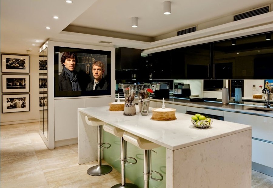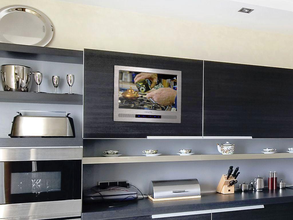 Al elegir un panel de televisión en la cocina, se tienen en cuenta muchos matices. La técnica no debe interferir con el proceso de cocción. Pero la pantalla debe ser claramente visible no solo para quienes cocinan alimentos en el área de trabajo de la cocina, sino también para quienes se sientan en la mesa del comedor. Si las oportunidades financieras lo permiten, es mejor comprar equipos caros. En los modelos de bajo costo, se instalan matrices de baja calidad que distorsionan la imagen en la pantalla, si la mira desde un lado. Mirar televisión, estar demasiado cerca de él, es peligroso para la salud, por lo que al elegir una técnica debe planificar de inmediato un lugar para una ubicación "remota". Los paneles de cocina grandes no son adecuados para cocinas pequeñas, que son ideales para cocinas de estudio combinadas con salas de estar o comedores. Al elegir un televisor para la cocina, debe planificar cómo instalar el dispositivo.