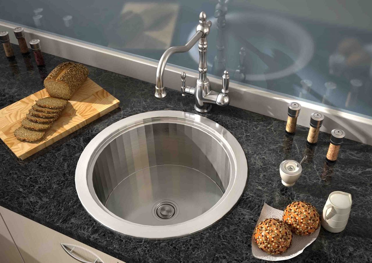 Undertables. Se hunde una especie de mortaja.Difieren en la forma en que se encuentran en relación con la encimera. No son visibles, están debajo de la superficie. Sus lados no tienen curvas, deben ser rectos, incluso. Están hechos de metal, piedra artificial, el plástico se usa muy raramente. Se ven elegantes, pero son difíciles de instalar, no son adecuados para todas las superficies, tienen un precio alto.