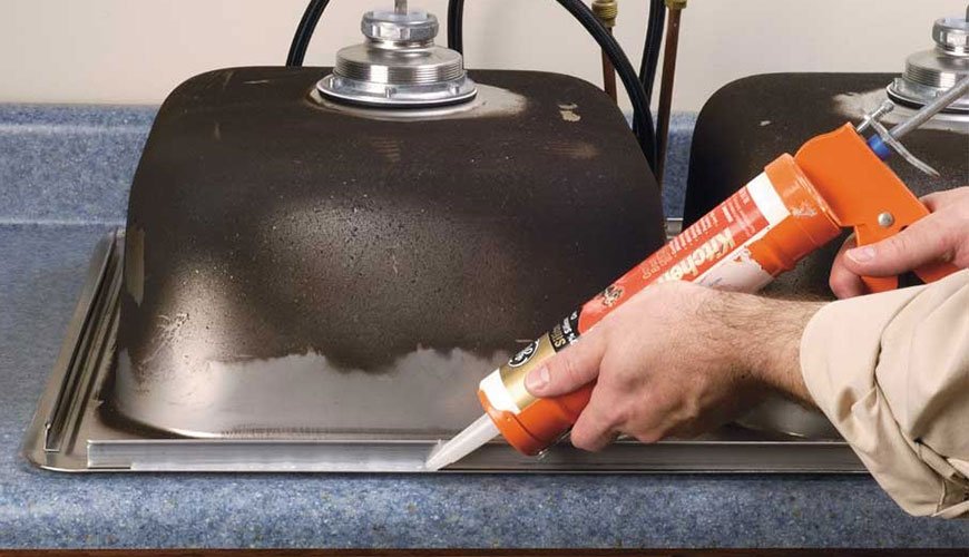 El sellador procesa el borde del fregadero en el interior. Proporciona una fijación fiable de los objetos en cuestión, no permite que pase fluido en la unión de los elementos.