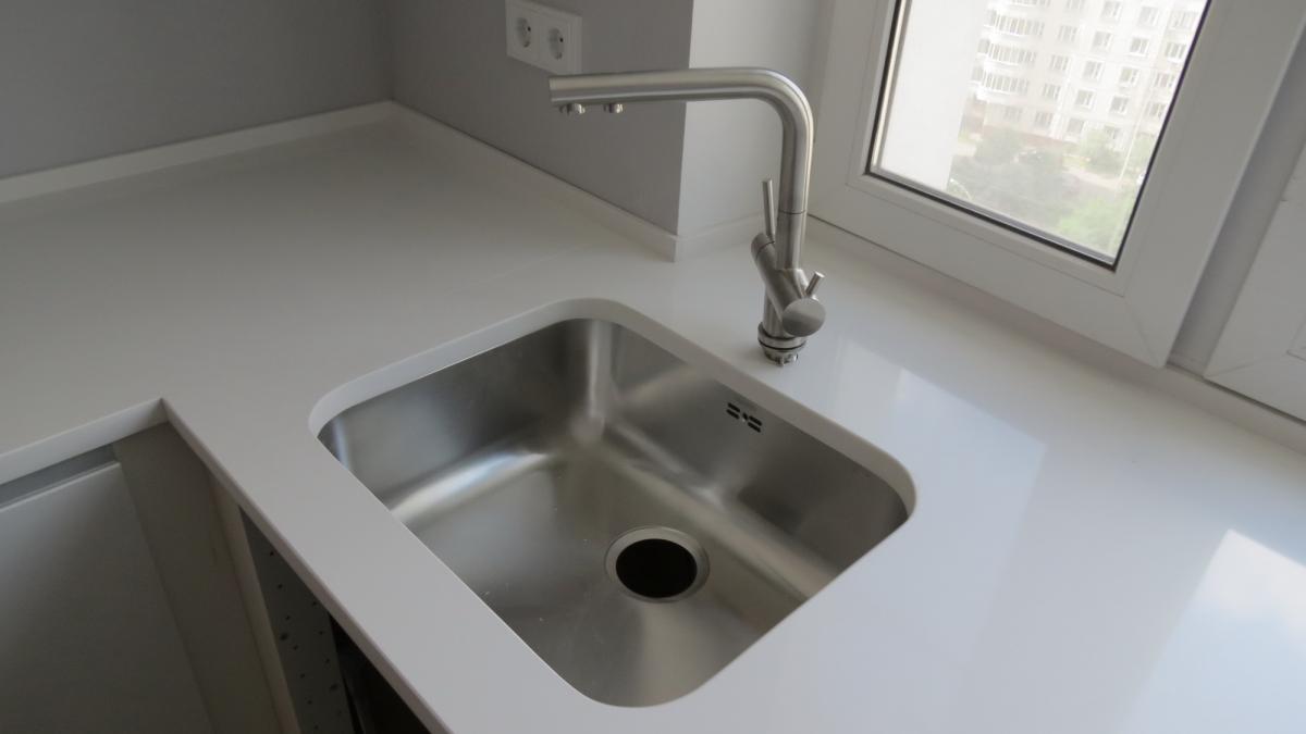 Las encimeras de piedra artificial generalmente vienen con un orificio terminado para el fregadero. Si no hay ninguno, pero al mismo tiempo hay un deseo irresistible de cortar el fregadero por su cuenta, en lugar de una sierra de calar, debe usar una fresa, en casos extremos, una amoladora con discos que tienen pulverización de diamante. Después de cortar los agujeros, los bordes se sobrescriben con un molinillo.