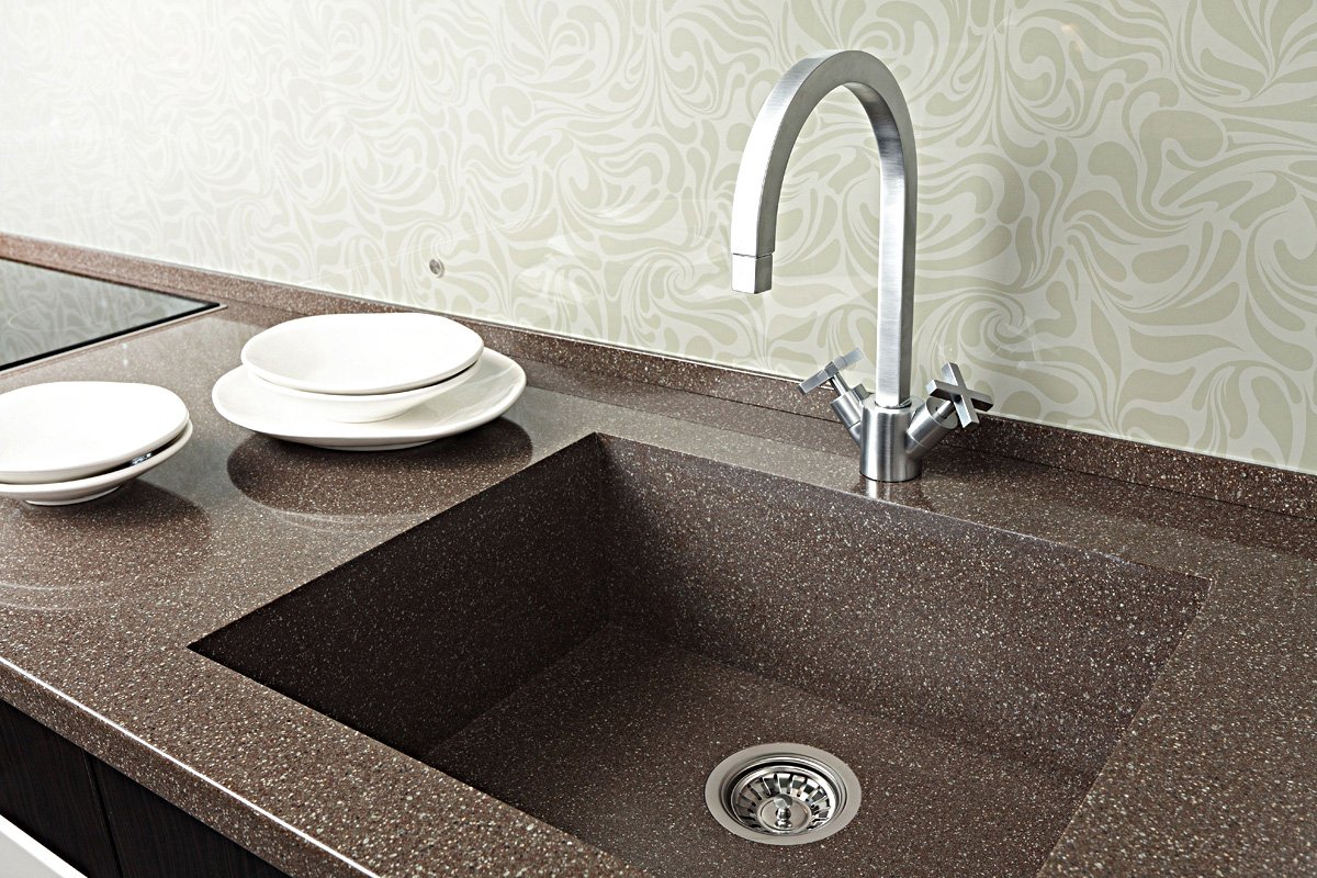 Material compuesto. Todos los sumideros de piedra artificial se pueden dividir en dos tipos: de aglomerado y acrílico. El primer tipo es una miga de piedra natural, interconectada con polímeros. Las sustancias más utilizadas son granito, cuarzo, fibra de vidrio. La cantidad de migajas afecta la calidad del producto, en una proporción porcentual es del 80 al 95%. Para la fabricación del segundo tipo, se utilizan metacrilato de metilo, hidróxido de aluminio y materia colorante. La resina acrílica es muy maleable, dúctil, por lo que el recipiente puede tener una forma arbitraria.