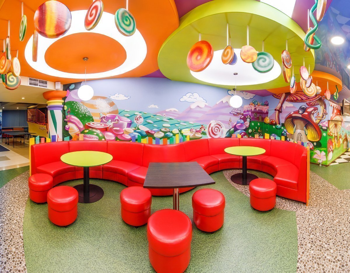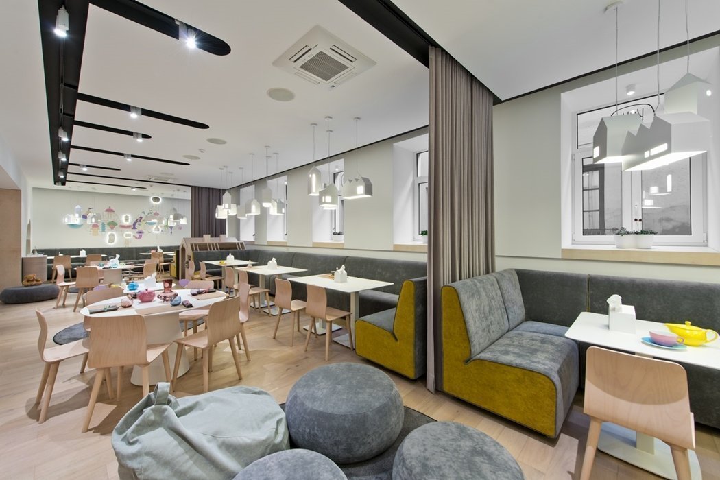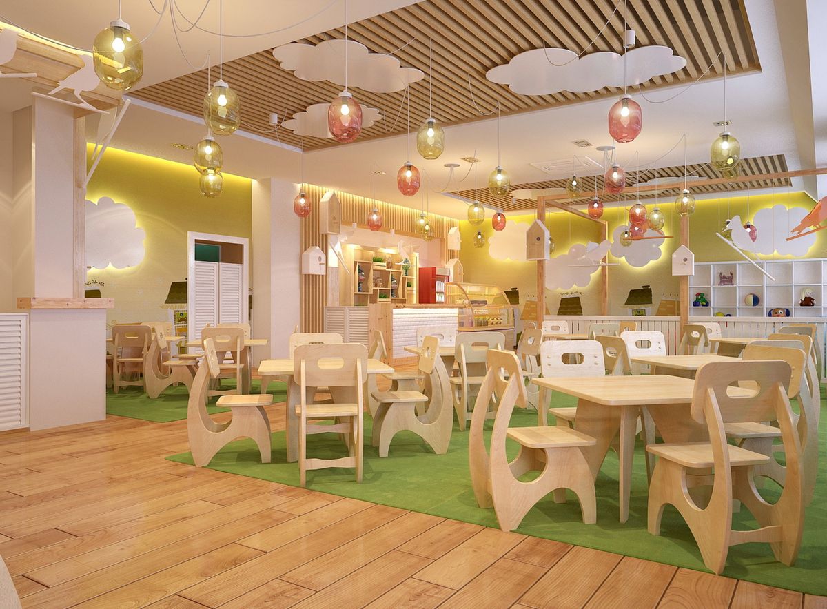Algunos cafés crean una zona infantil separada donde los padres pueden enviar a sus hijos y relajarse. Sin embargo, recientemente, establecimientos enteros que están diseñados solo para niños, una especie de Disneyland culinario para migas, están ganando popularidad. La sala central generalmente se divide en tres zonas:
