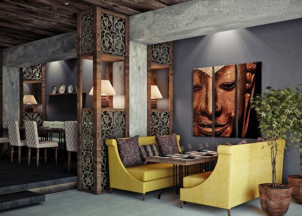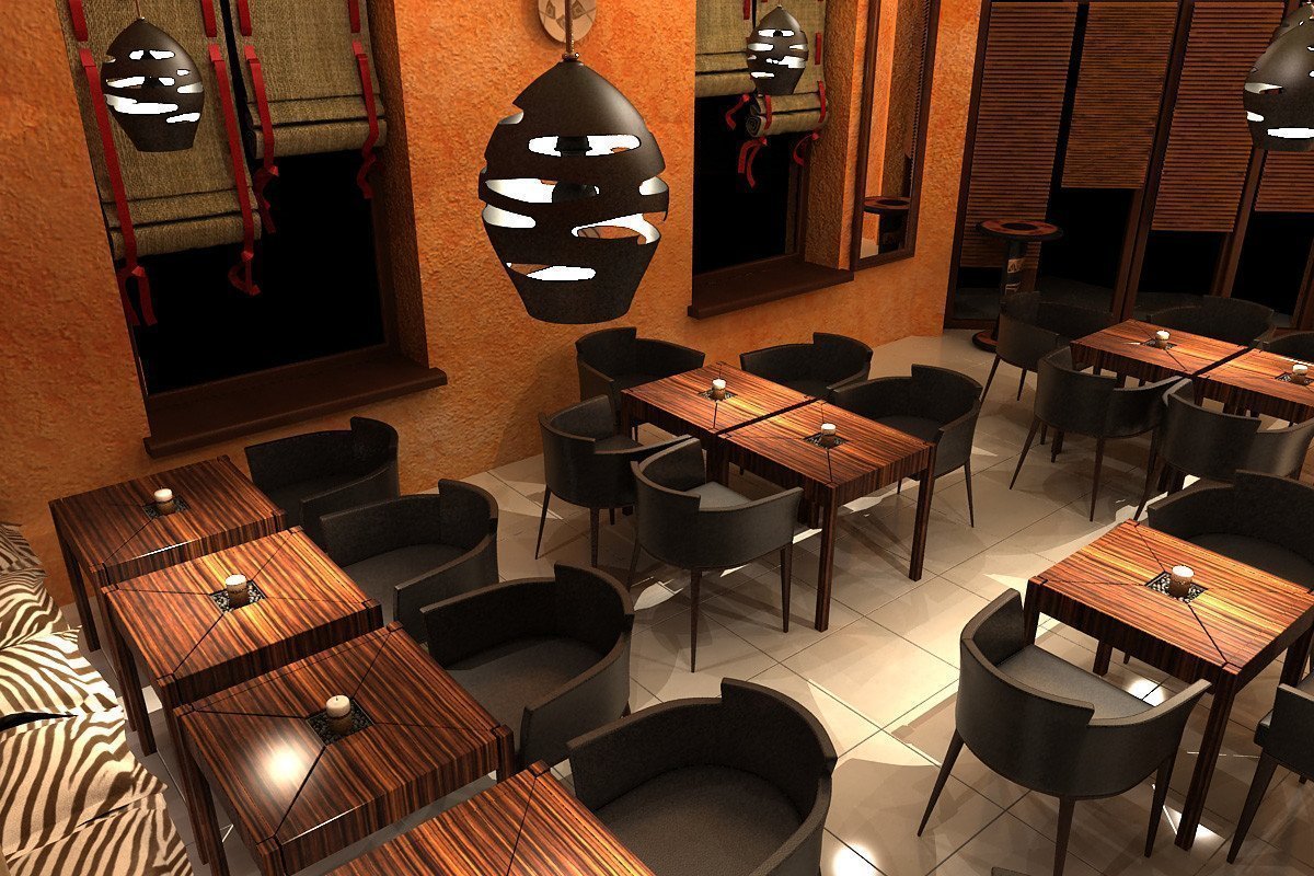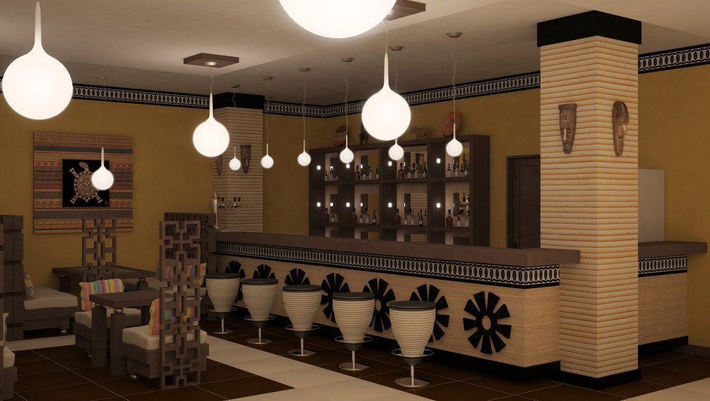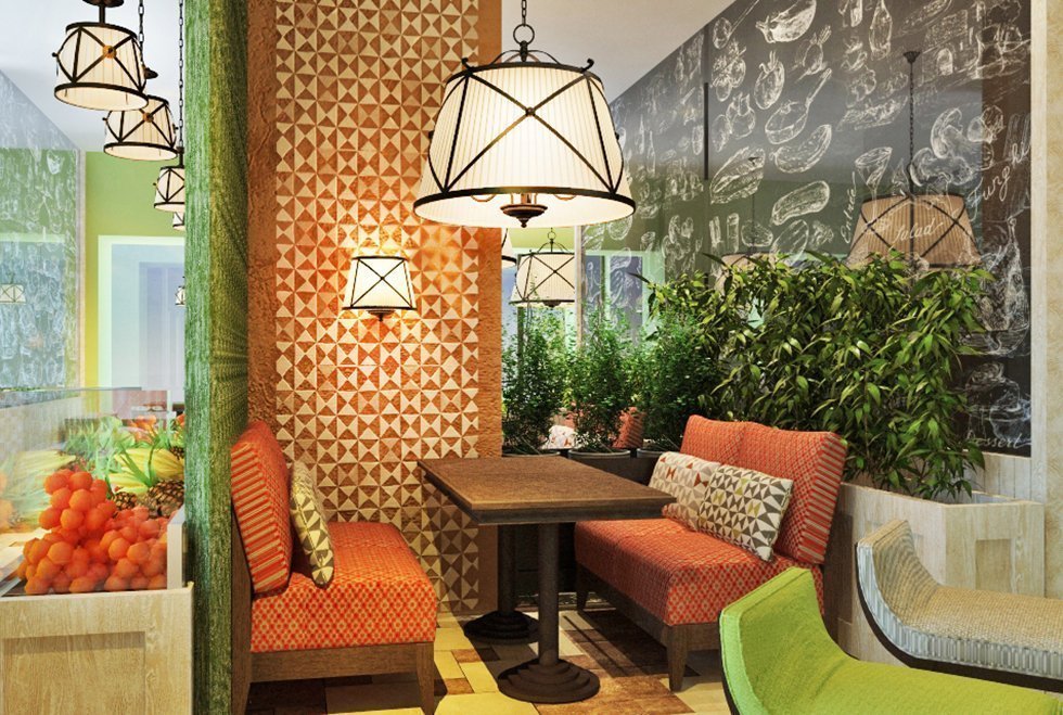 Por separado, vale la pena señalar el estilo étnico. Al diseñar un café para cierto país con cocina nacional, el propietario matará dos pájaros de un tiro a la vez: