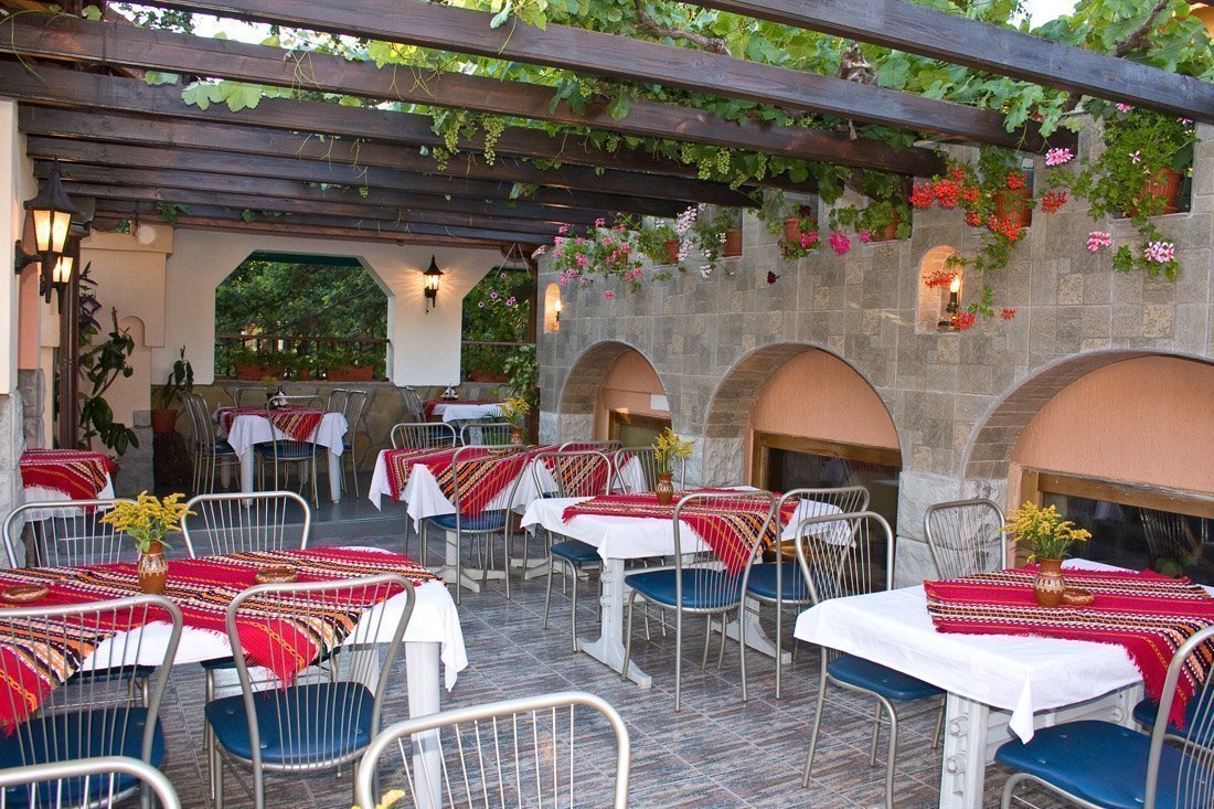 El patio de comidas, que está adjunto a la institución principal y ofrece a los huéspedes la opción de un área de recreación adicional.