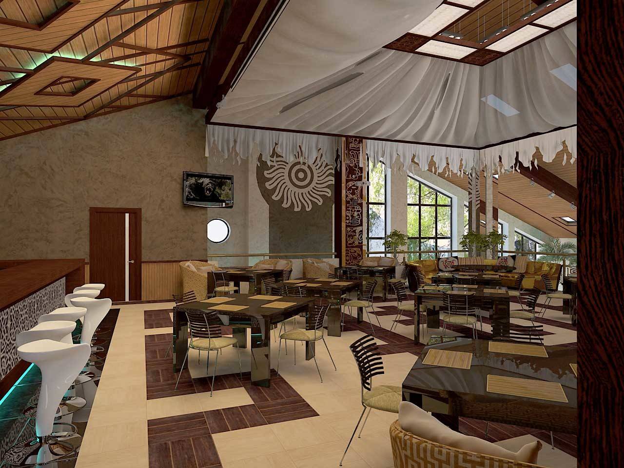 En las instituciones étnicas, es deseable que el personal hable el idioma de ese país, bajo el estilo del cual diseñan el interior. Si coinciden, entonces en todo.