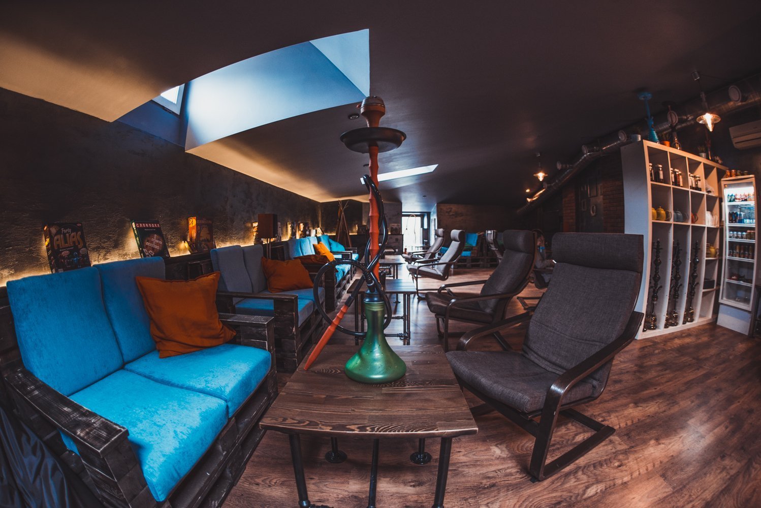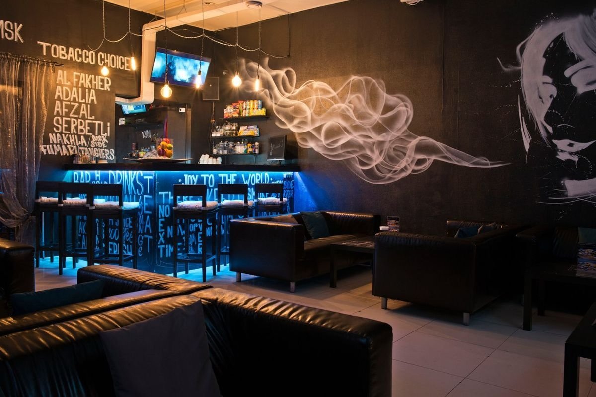 La decoración de la cachimba puede ser moderna y de acuerdo con los cánones del estilo oriental clásico. En el primer caso, se utilizan superficies lisas en la decoración, muebles de formas estrictas, una gran cantidad de luces de neón blancas. En el estilo oriental, se utilizan azulejos y textiles con muchos patrones sutiles.Lo principal que debe preverse en una institución de este tipo es la presencia de áreas separadas donde los huéspedes puedan fumar una cachimba de manera segura. En algunos cafés, este servicio está en la lista de los adicionales y para los visitantes que desean dejar salir un par de anillos de humo, crear lugares separados fuera de la sala común.