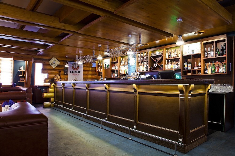Ruso En este estilo, la sala principal está diseñada como una taberna con muebles de madera maciza y una herradura sobre la entrada (afortunadamente, como dice el refrán).