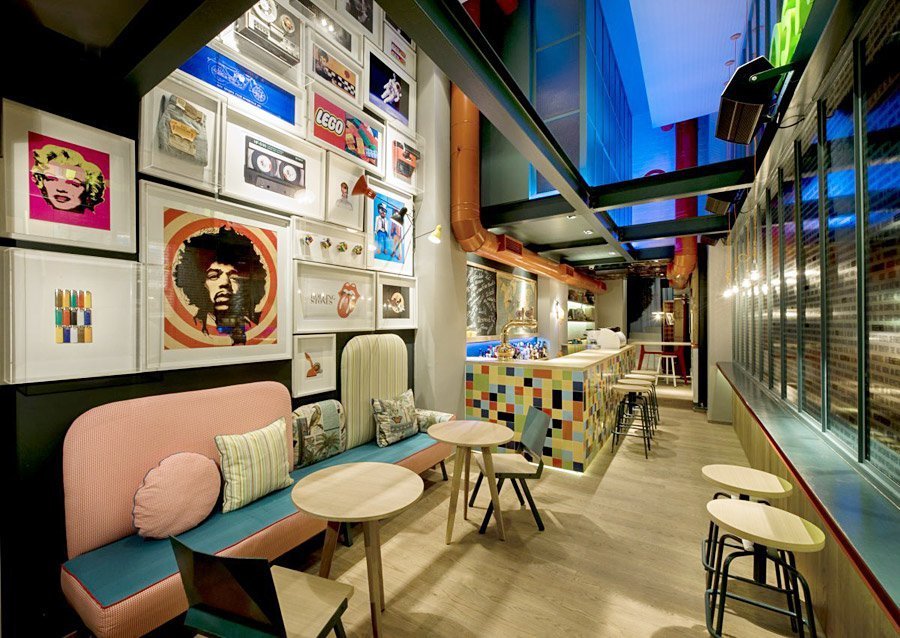 Estilo disco Adecuado para aquellos que sienten nostalgia por los locos años 80. El ambiente del café será llamativo y desafiante utilizando colores brillantes y carteles con bandas de música que eran populares en esos días.