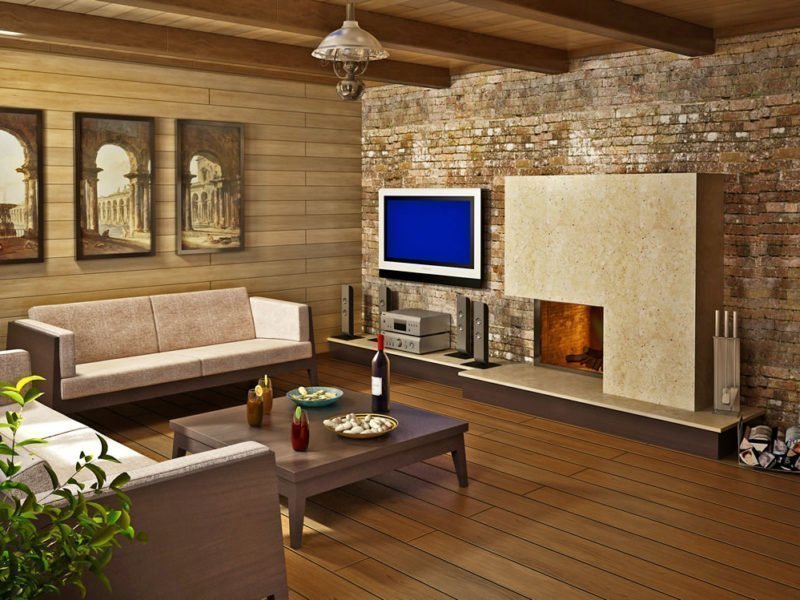 Ladrillo natural o piedra. El material durará más de un año. Absolutamente inmune a la alta humedad. Para equilibrar el "frío" que proviene del recubrimiento, se recomienda colocar una chimenea en la habitación.