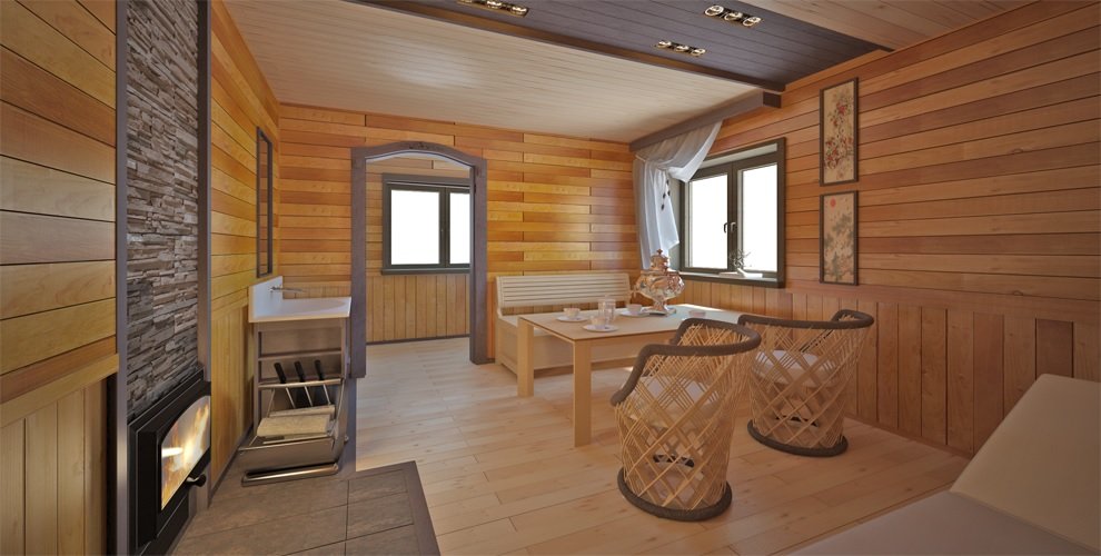 Además, la habitación debe estar bien ventilada. Por supuesto, la estructura en sí misma puede estar construida de ladrillo, pero es mejor usar materiales naturales. El haz se volverá óptimo. La madera es respetuosa con el medio ambiente y permitirá encarnar las ideas tradicionales del estilo ruso en el exterior y el interior de la estructura.Las dimensiones del cuarto de baño se determinan dependiendo de las dimensiones de la estructura misma. El área mínima es de 10 metros cuadrados. Los diseñadores profesionales rara vez se sienten atraídos por el desarrollo de la decoración de interiores, ya que el arreglo generalmente se toma en sus propias manos.