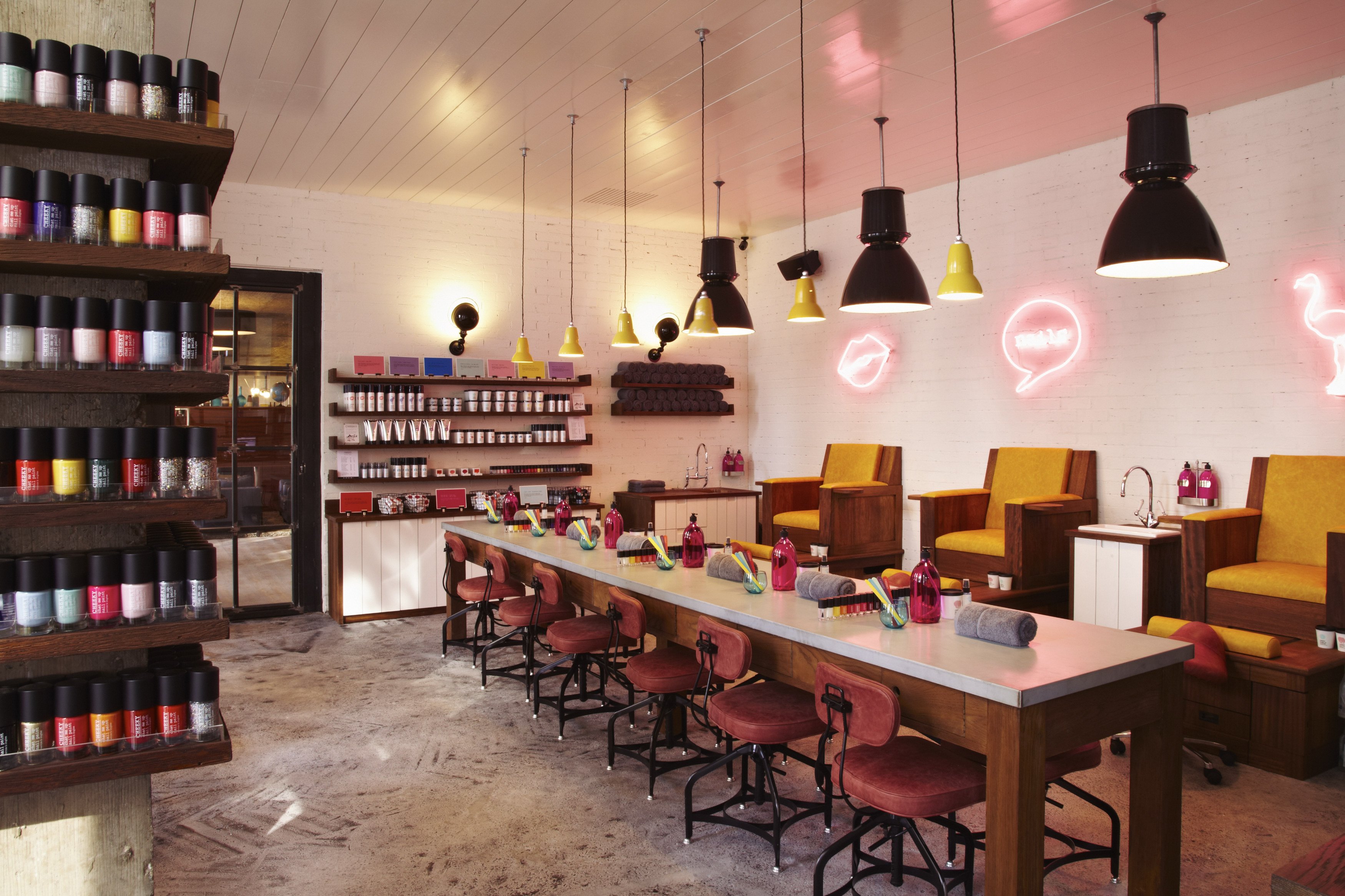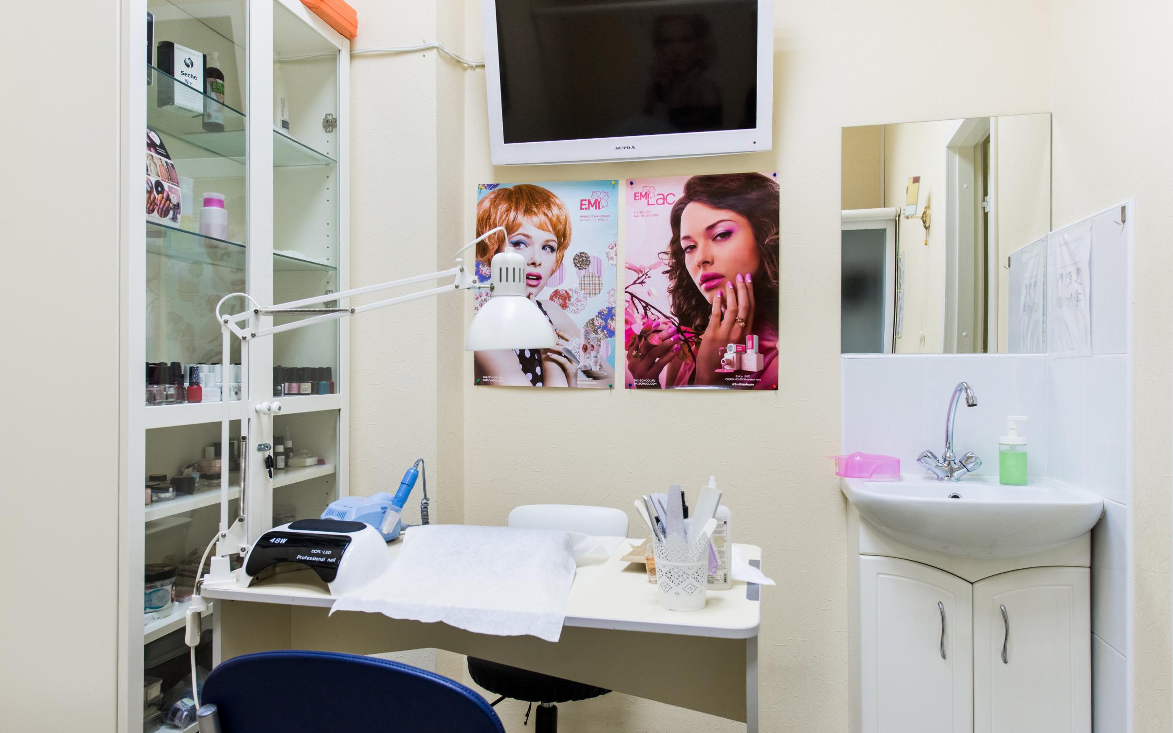 Los artistas de uñas trabajan con color. La elección correcta de tonos es la clave para obtener un resultado excelente y, como resultado, gracias a clientes satisfechos.Y esto significa que deben excluirse todos los factores posibles que pueden distorsionar el color en el área de trabajo. Deje vívidos murales y graffiti en el área de recepción y sala de espera. Proyectan reflejos, cambiando así los verdaderos colores. Por lo tanto, en áreas para procedimientos, las paredes deben ser ligeras.