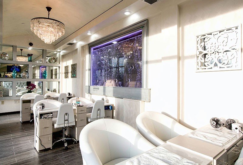 Las paredes del estudio de manicura están cubiertas con una variedad de materiales. Se pueden pintar o recortar con azulejos, mosaicos, papel tapiz, piedra natural, yeso texturizado, vidrio, pinturas de espejo.