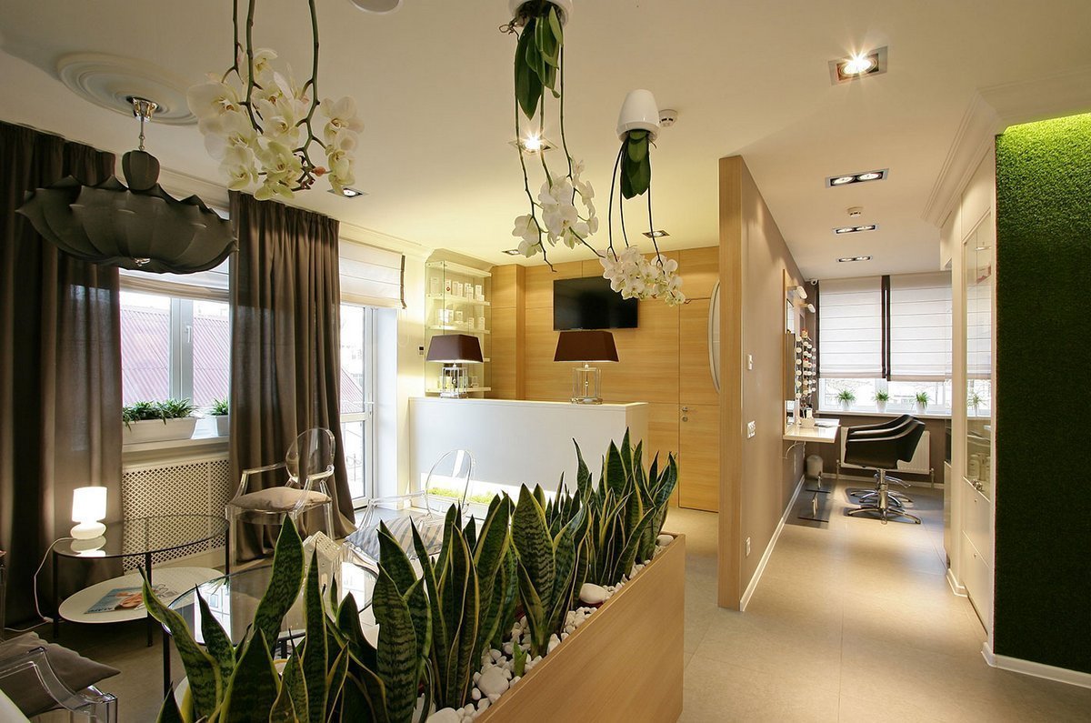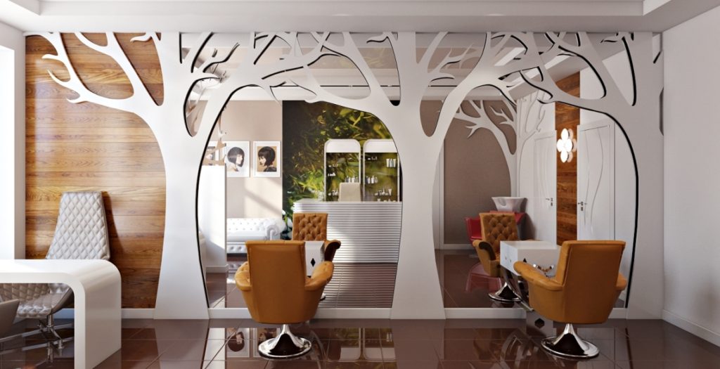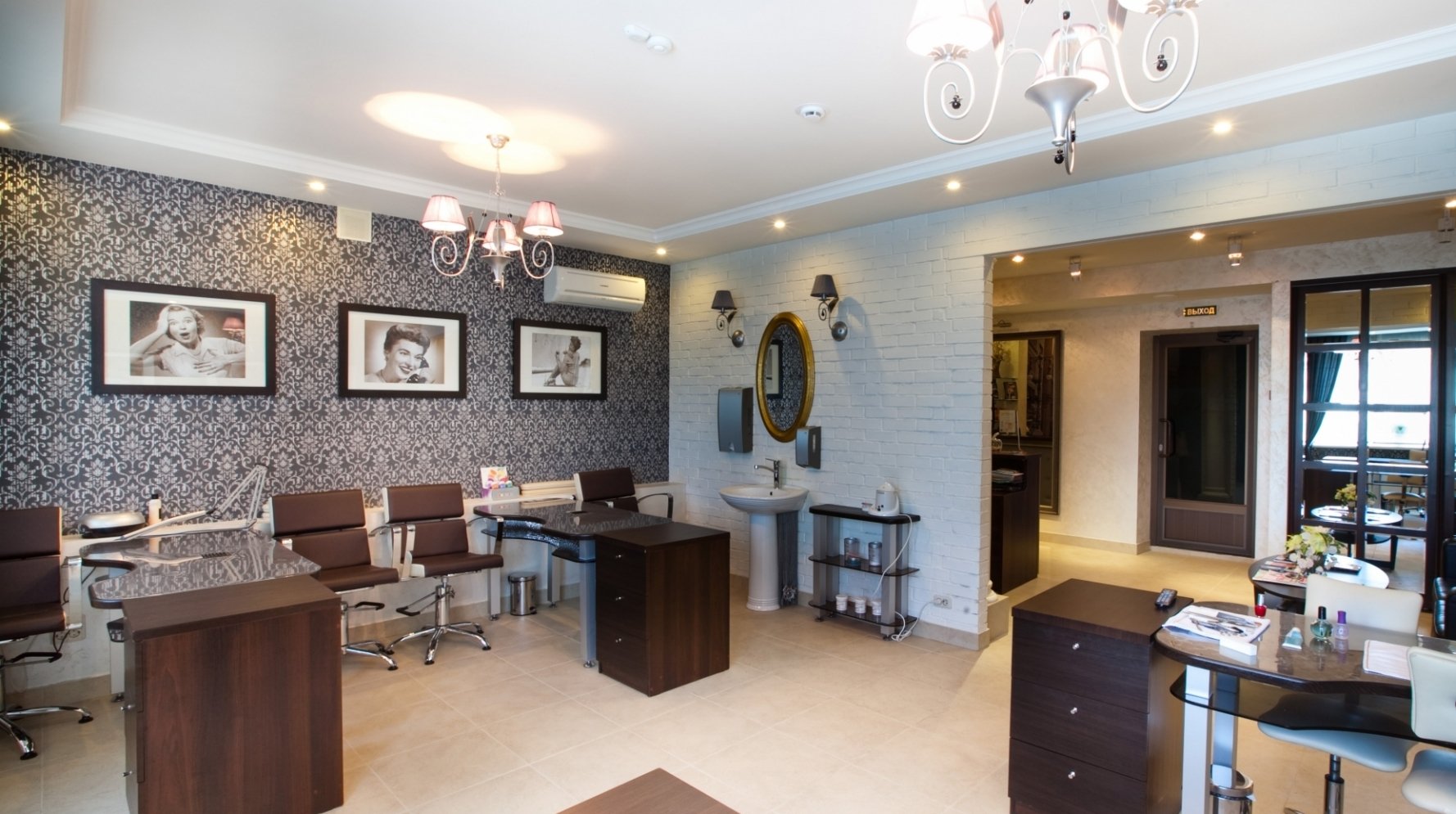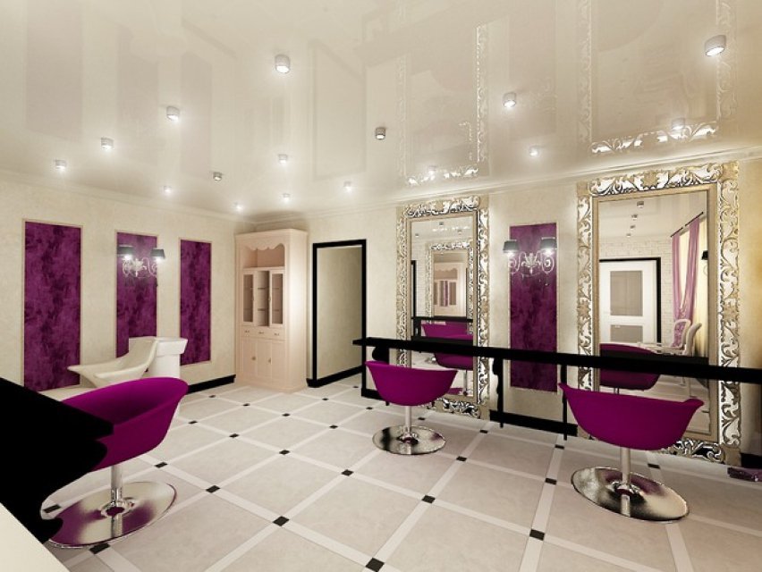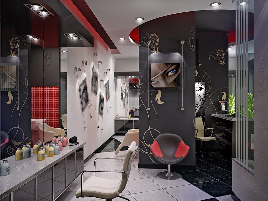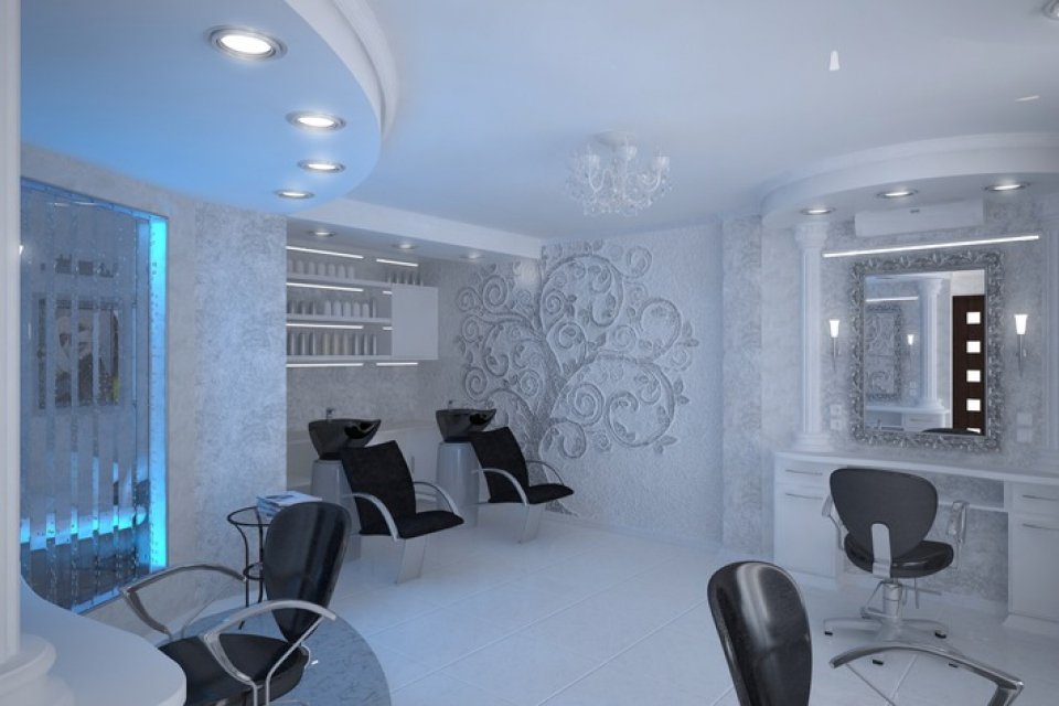 El tamaño de las instalaciones y el contingente estimado de visitantes regulares también juegan un papel importante. Para los salones pequeños de clase económica (menos de 25 m2), que incluso se pueden ubicar en el apartamento, el diseño generalmente se piensa de forma independiente y las reparaciones se realizan a mano. Puede obtener ideas de la decoración de establecimientos de marca, o puede encontrar ejemplos de diseño en revistas de diseño de moda. En tales espacios reducidos, la atmósfera no debe pretender ser un lujo, ya que tal solución no se vería elegante, sino inapropiada. Los propietarios de salones de belleza de lujo para crear un interior elegante, como regla general, recurren a un estudio de diseño y transfieren esta tarea a los hombros de los profesionales. Esto será seguido por la aprobación del proyecto terminado y su implementación. Todo el trabajo será realizado por diseñadores experimentados, pero tendrá que pagar generosamente por dicho trabajo. Entonces la pregunta es solo en el presupuesto.