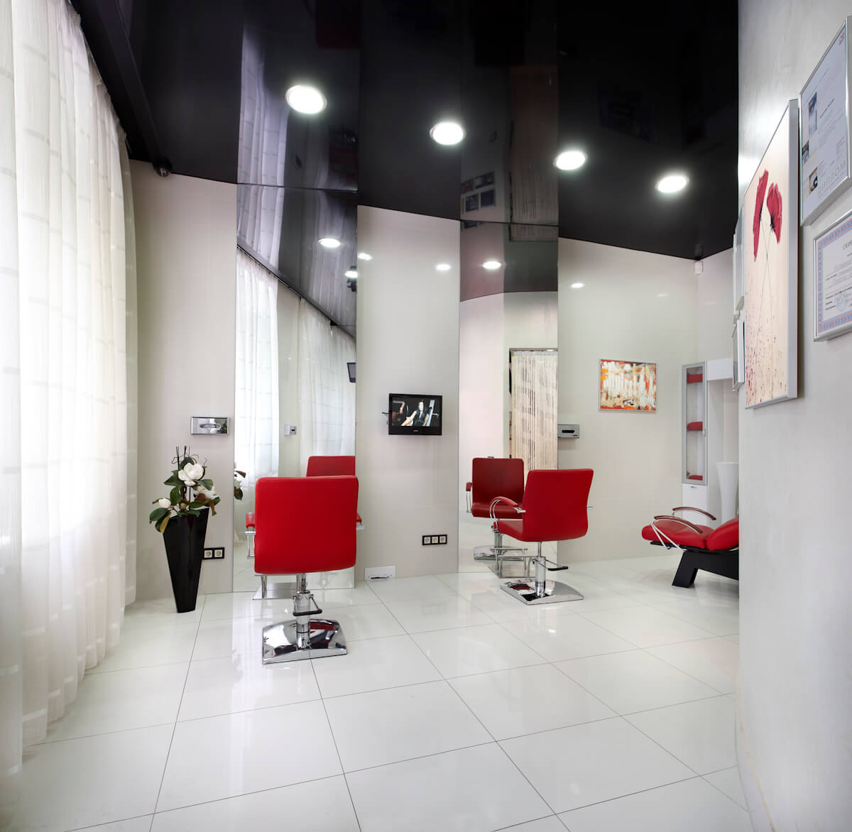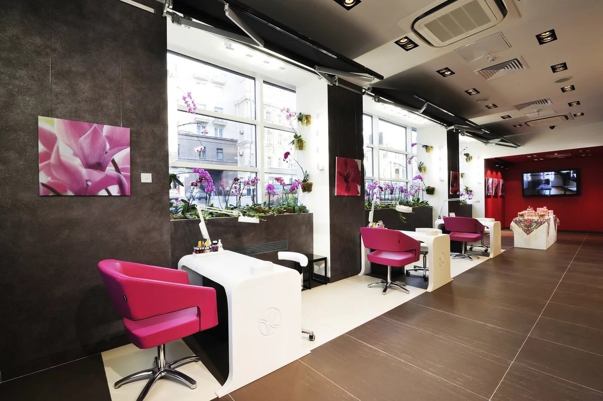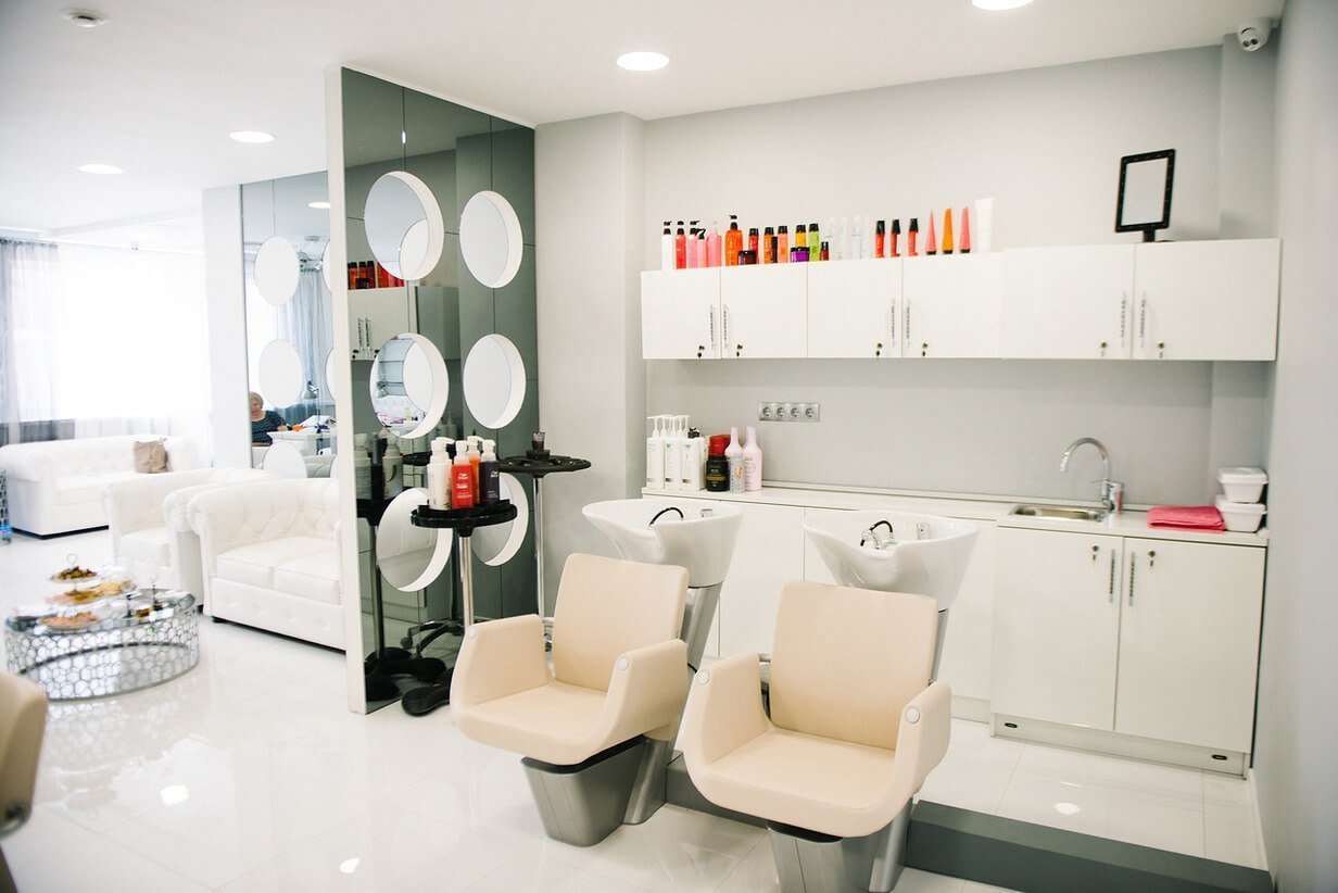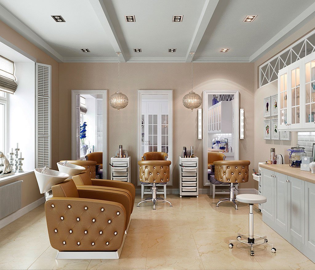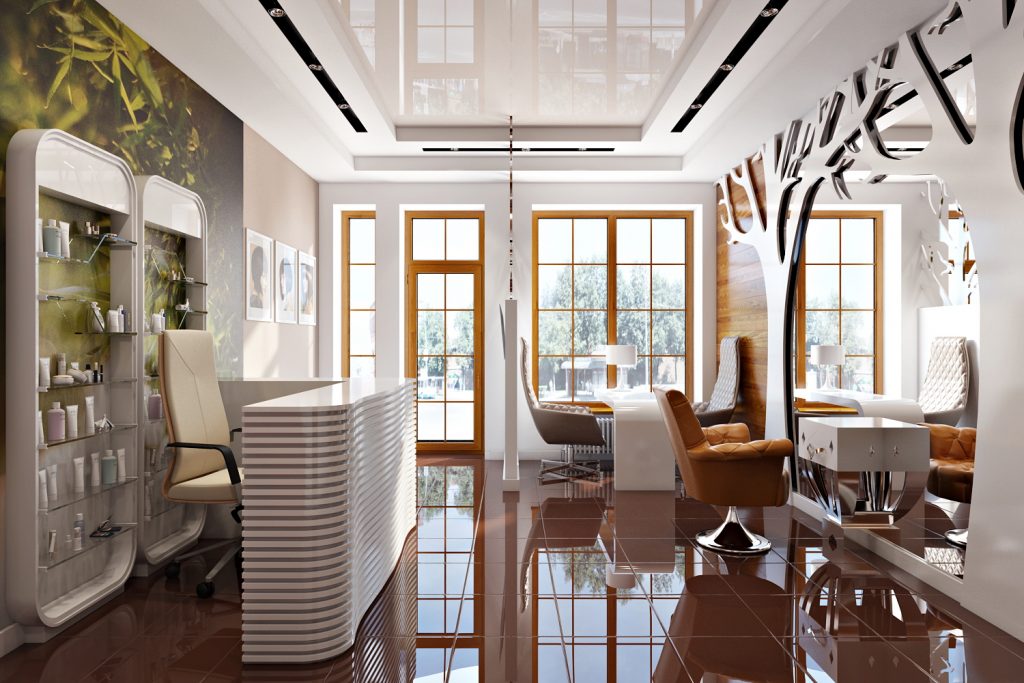 El tamaño de las instalaciones y el contingente estimado de visitantes regulares también juegan un papel importante. Para los salones pequeños de clase económica (menos de 25 m2), que incluso se pueden ubicar en el apartamento, el diseño generalmente se piensa de forma independiente y las reparaciones se realizan a mano. Puede obtener ideas de la decoración de establecimientos de marca, o puede encontrar ejemplos de diseño en revistas de diseño de moda. En tales espacios reducidos, la atmósfera no debe pretender ser un lujo, ya que tal solución no se vería elegante, sino inapropiada. Los propietarios de salones de belleza de lujo para crear un interior elegante, como regla general, recurren a un estudio de diseño y transfieren esta tarea a los hombros de los profesionales. Esto será seguido por la aprobación del proyecto terminado y su implementación. Todo el trabajo será realizado por diseñadores experimentados, pero tendrá que pagar generosamente por dicho trabajo. Entonces la pregunta es solo en el presupuesto.