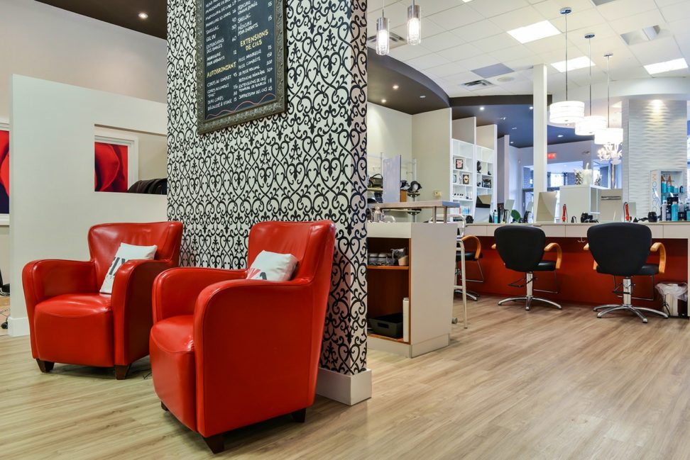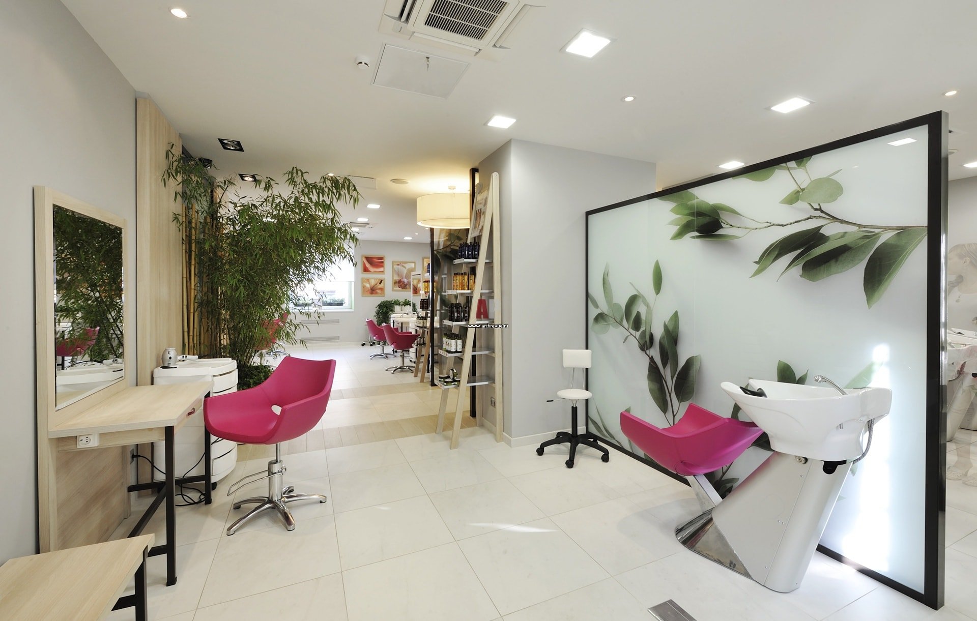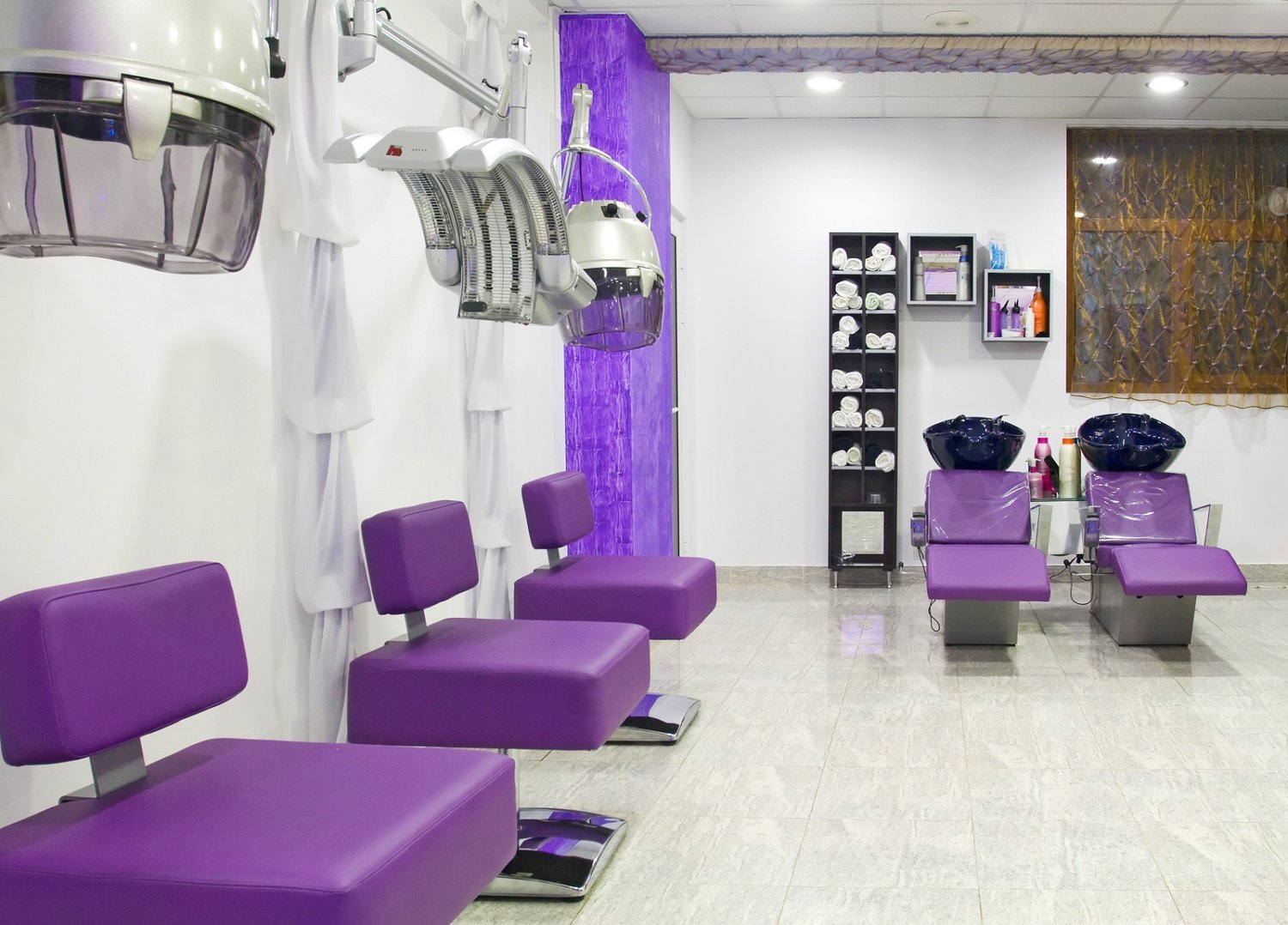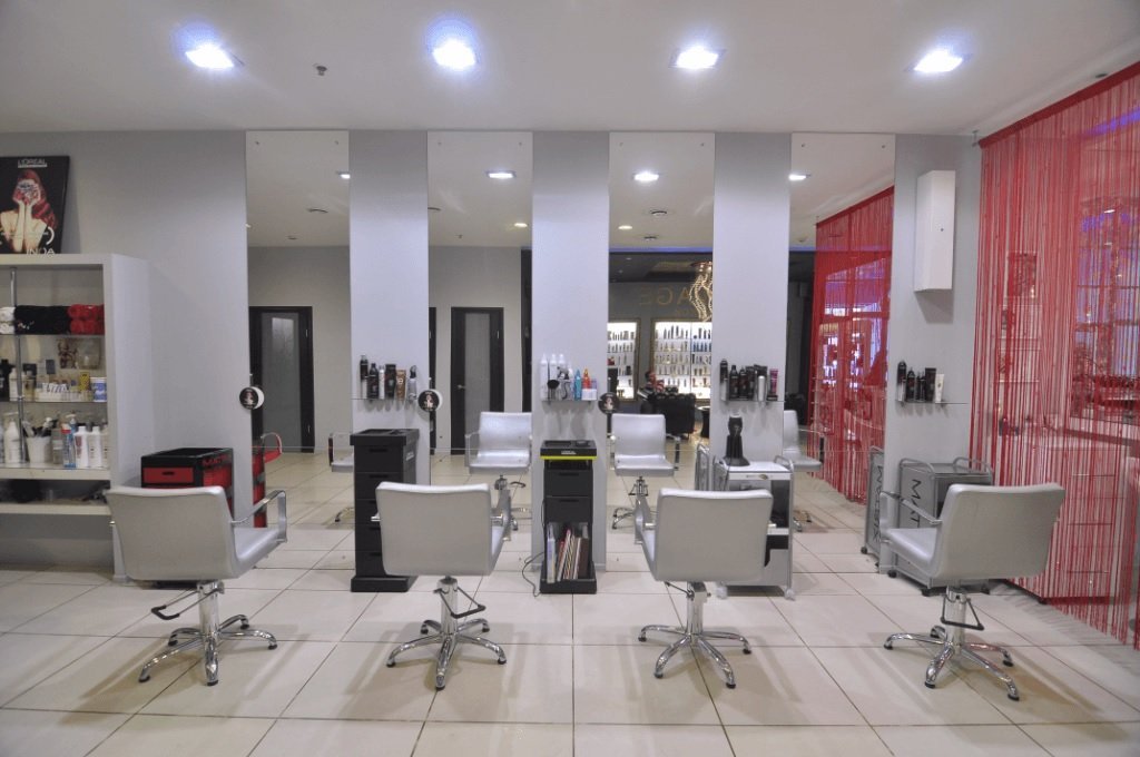 Para obtener una hermosa imagen interior, debe elegir el esquema de color correcto. La paleta debe ser aproximadamente 3/4 del tono principal, para lo cual debe elegir un tono pastel. En el salón de belleza, los clientes deben recibir no solo emociones agradables de la transformación, sino también tranquilidad moral. No en vano, para muchas mujeres un peluquero es una salida de la que se puede hablar. Es más fácil deshacerse de la carga de problemas emocionales y domésticos en un ambiente tranquilo donde se usa un tono blanco, gris o moderno de "café con leche". El segundo color, que diluirá el suave principal, será un tono ligeramente contrastante con él, pero similar en espíritu. Por ejemplo, puede ser turquesa, rosa, lila, azul, amarillo, menta, oliva, coral, melocotón, nuez o verde. Para el papel del tercer color en la composición, se elige un tono de acento que estará presente en la decoración de la habitación: azul, púrpura, verde hierba, naranja jugoso, burdeos o negro. No solo el estado de ánimo de los visitantes, sino también los indicadores de rendimiento del personal dependerán de la combinación de colores. Por lo tanto, no exagere con sombras sombrías y convierta un salón de belleza en un refugio gótico de un pesimista.