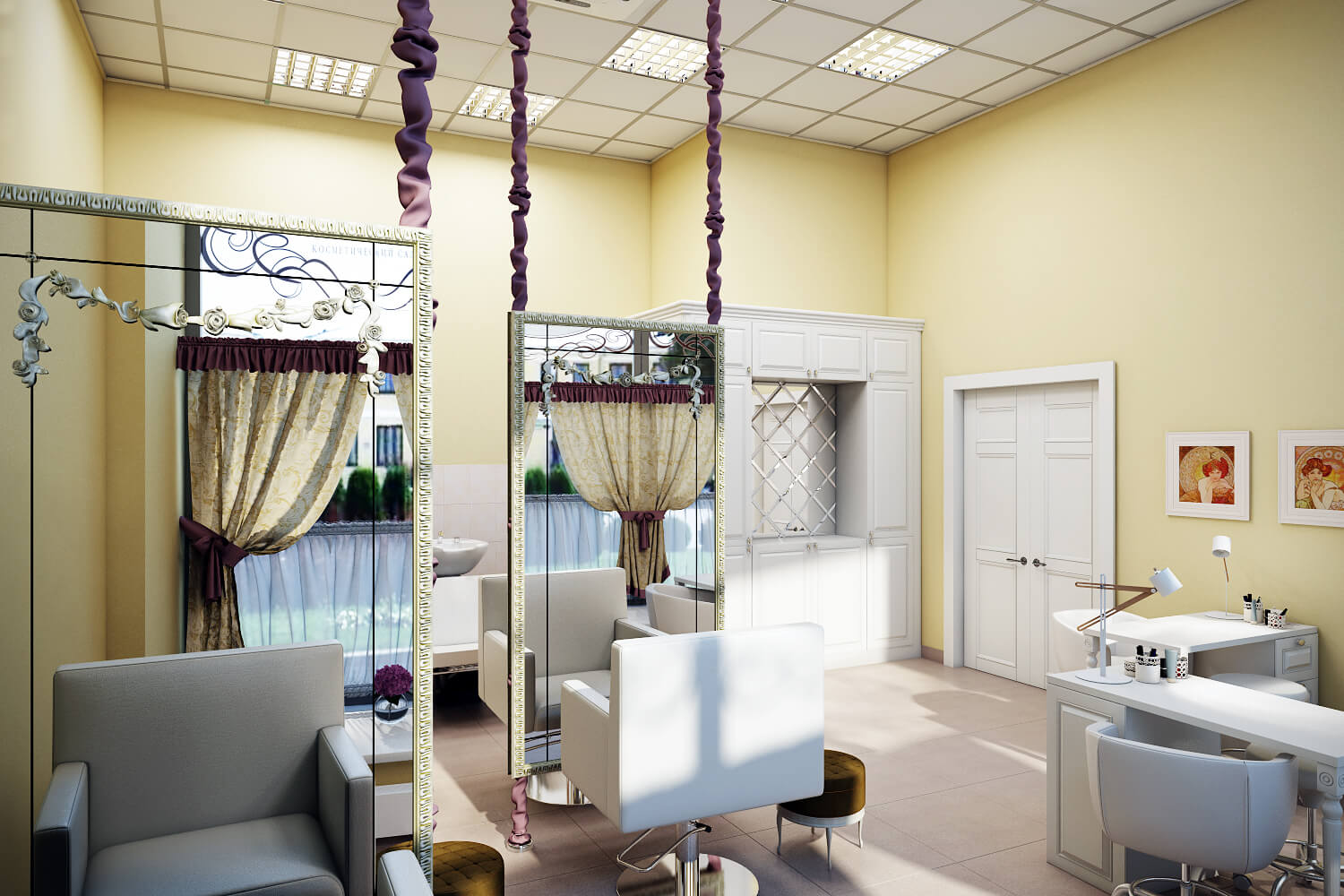 Antes de proceder con la reparación, es necesario comparar sus ideas creativas con los estándares que deberán observarse, ya que los salones de belleza a menudo se convierten en objetos para inspecciones por parte de las autoridades supervisoras. Asegúrese de equipar el lugar con la iluminación correcta, use solo materiales ignífugos para la decoración y organice correctamente el contenido. Cualquier diseño debe basarse en los "tres pilares":