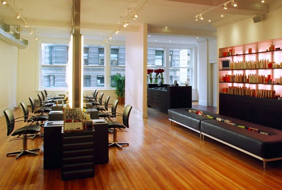 Además de la seguridad contra incendios, dado que el salón de belleza es un lugar público donde se reúnen grupos de personas, no existen requisitos especiales para los materiales de decoración. Es mejor elegir un revestimiento de piso de mayor resistencia y sin juntas, ya que con el tiempo el cabello cortado comenzará a obstruirse. El piso a granel es ideal para una sala de peluquería común. Además de la fuerza, también tiene un efecto reflectante, que aumentará visualmente el espacio. Esta técnica es útil para pequeños estudios. Para diseñar el área de recepción y entrada con un vestidor, puede elegir una alfombra. En las oficinas, los pisos están cubiertos con linóleo, tablero de parquet y laminado. Para decorar las paredes, elija yeso, piedra, ladrillo, poliuretano, corcho, madera o su chapa analógica más barata.Al comprar material, se guían no solo por su apariencia y características, sino también por el costo. Los salones de élite con un presupuesto ilimitado pueden permitirse incluso especies de madera raras, y en opciones económicas, elija un fondo de pantalla.