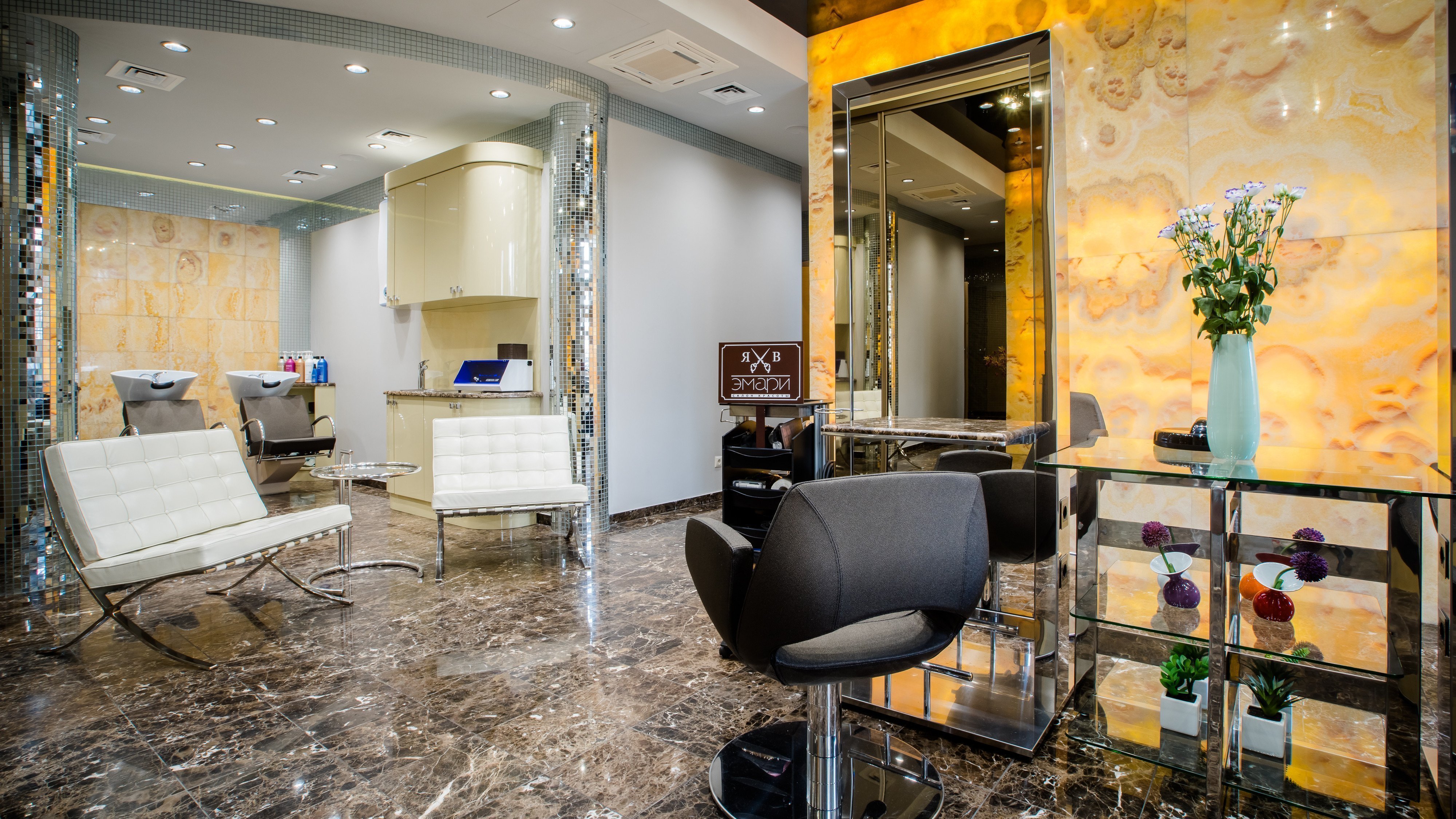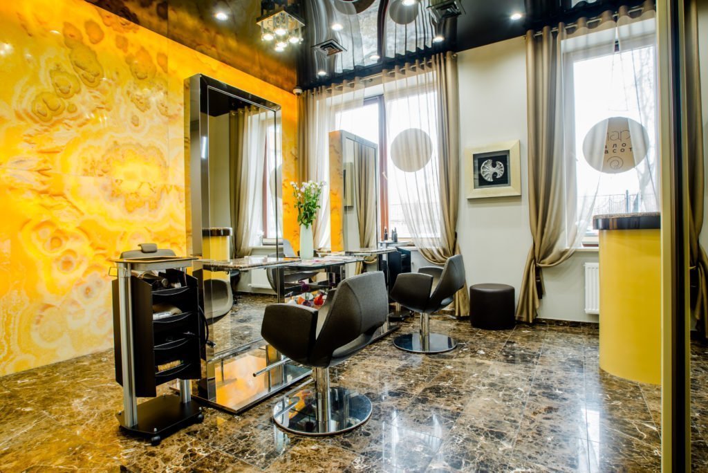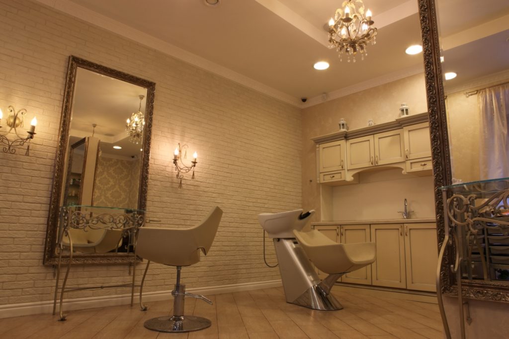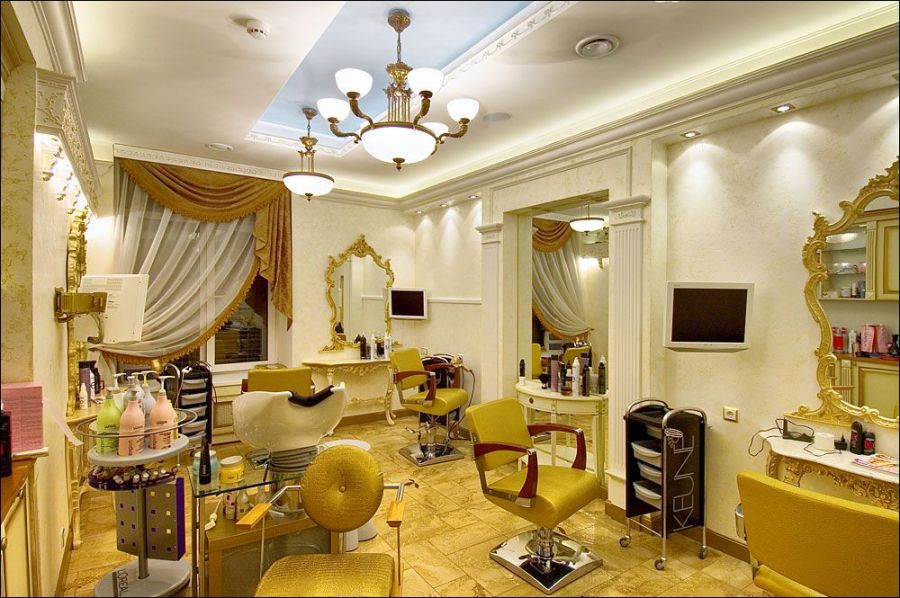 Al elegir un estilo, debe confiar en el futuro contingente de visitantes. Si la audiencia principal será exitosa para mujeres de edad, entonces, por supuesto, quedarán impresionados por el lujo elegante y pesado de los estilos de élite: rococó, art nouveau, barroco, imperio o estilo clásico. La abundancia de oro, detalles exquisitos, un marco de espejo de una baguette, vidrieras, molduras de estuco y textiles caros ayudarán a encontrar el equilibrio perfecto entre comodidad y belleza. Para los visitantes jóvenes y más "avanzados", el minimalismo, el loft, la alta tecnología y el estilo japonés son adecuados. Estas instrucciones en sus principios se mantienen actualizadas y capturan cualquier tendencia de moda sobre la marcha. La abundancia de superficies de acero, formas inusuales y líneas discontinuas, una combinación de gris, blanco con tonos llamativos contrastantes, muebles y decoración originales harán su trabajo y atraerán a los fanáticos de las soluciones de diseño no estándar. Como compromiso, puede usar provenza universal, art deco, chalet o etnia. Estos estilos se encuentran en el medio entre áreas prácticas y lujosas, por lo que son adecuados para salones universales con un contingente abigarrado.