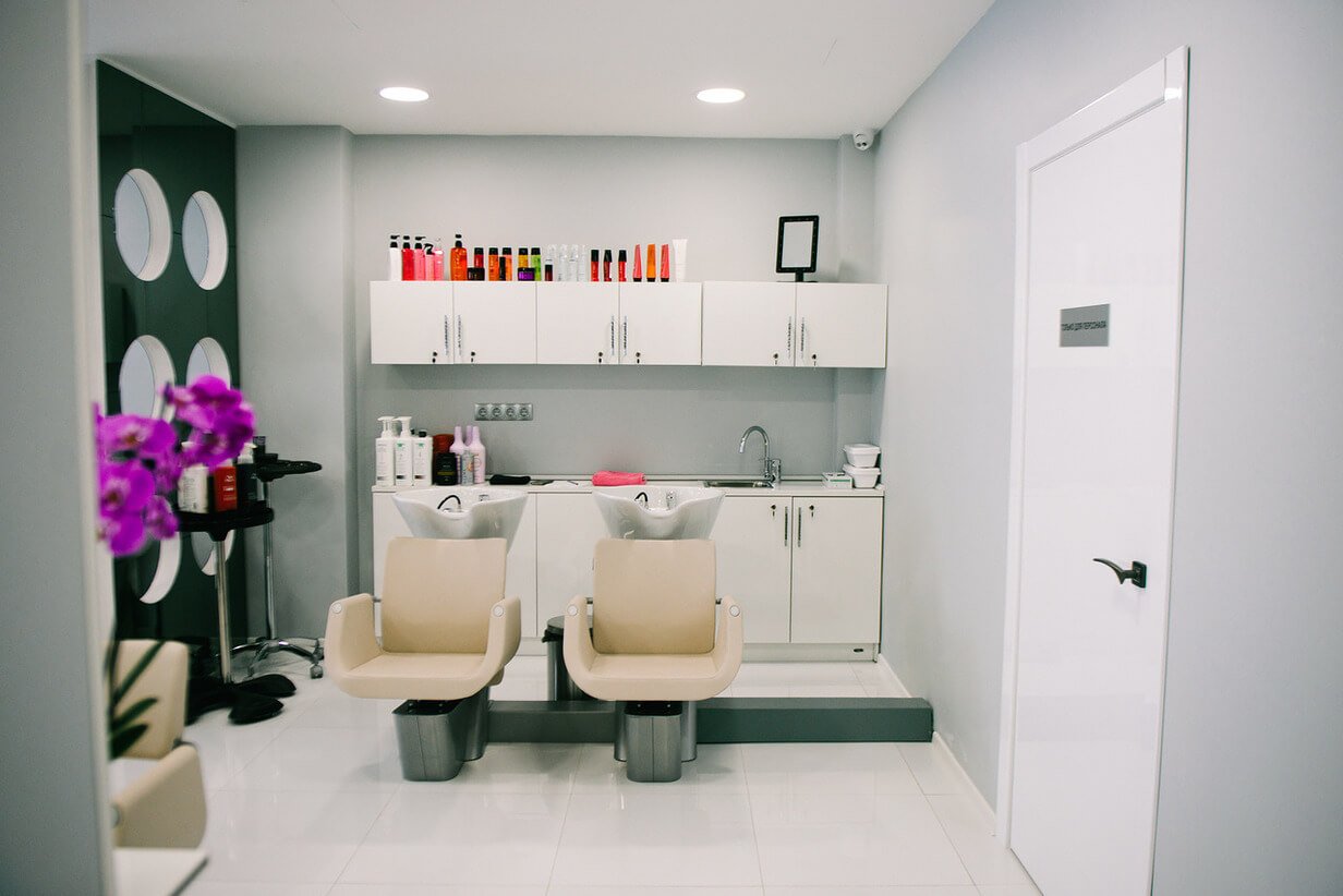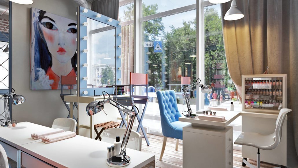 Para que los huéspedes sientan especial cuidado y respeto por sí mismos, cada lugar de trabajo está decorado con un jarrón con flores frescas. Tal movimiento animará el interior de la habitación y dará emociones agradables a cada visitante.Incluso una rosa causará una sonrisa. Además, uno no debe olvidarse de las plantas de interior, macetas con las que también se instalan en lugares bien iluminados. En los espaciosos salones, hay un mini-buffet, donde todos pueden disfrutar de una taza de café mientras esperan. También es necesario poner una mesa de café con literatura temática para entretener a quienes están aburridos y ayudar a determinar dudas sobre una manicura o peinado. No debemos olvidarnos del baño para el personal. Está ubicado en el extremo más alejado de la cabina, de modo que el olor del almuerzo no se extiende por todas las salas de trabajo. La belleza es una tarea costosa que llevará mucho tiempo relajarse. El hermoso diseño se convertirá en un señuelo para los visitantes y ayudará a un empresario novato a desarrollar su creación.