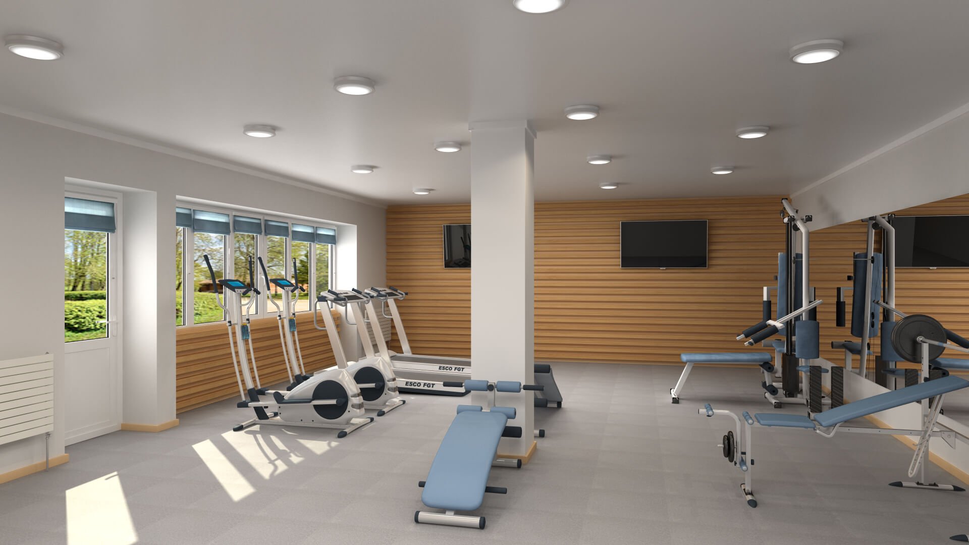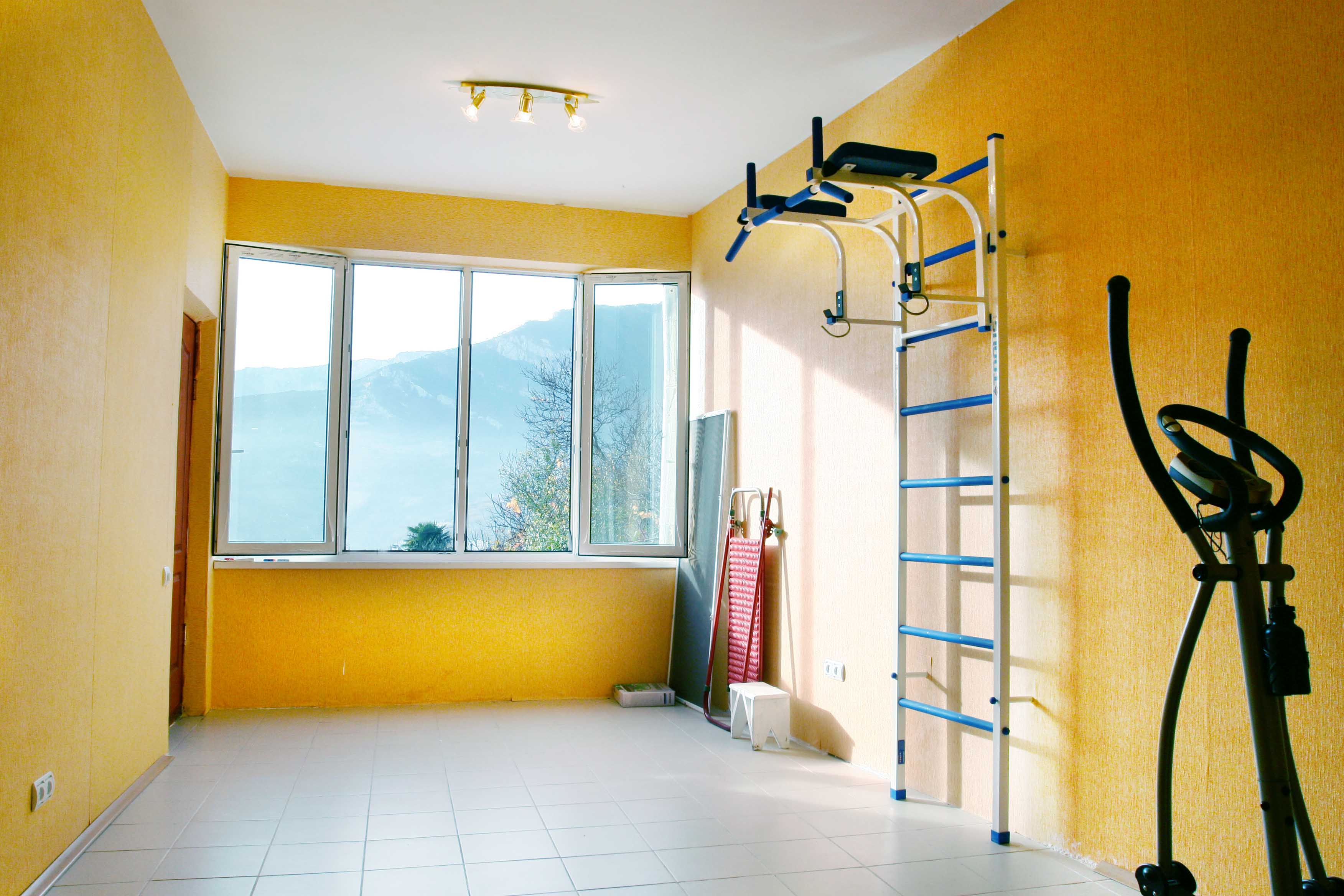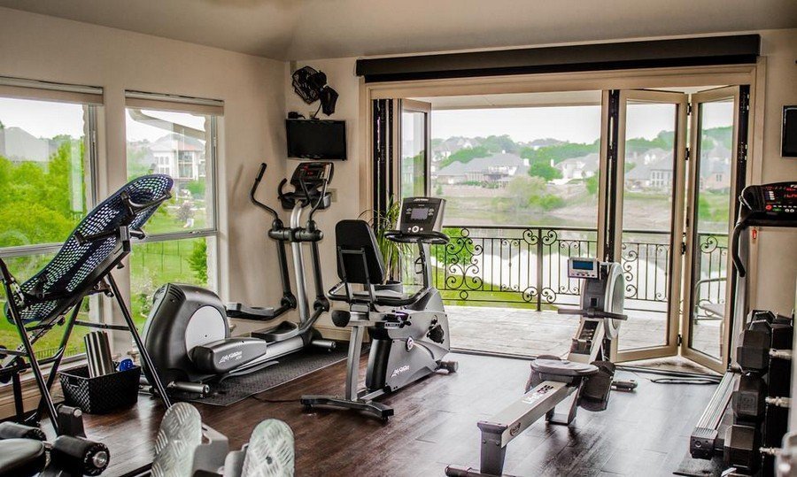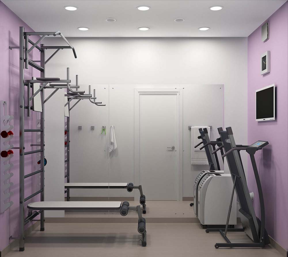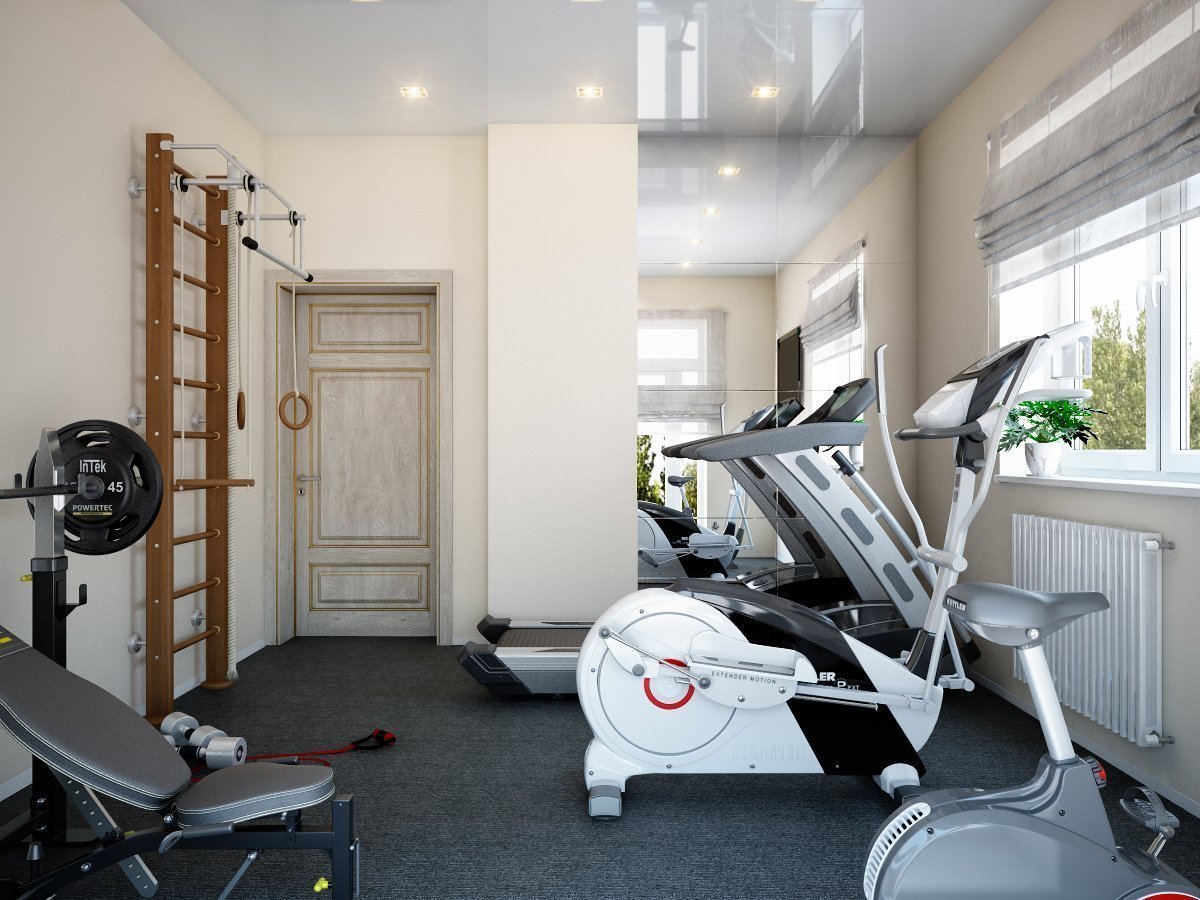 Una opción ideal para un gimnasio privado es una habitación separada con un área de más de 10 metros cuadrados con buena ventilación y grandes ventanas. El flujo de aire adecuado es la clave para el bienestar durante los entrenamientos de cardio. Es necesario un alto nivel de luz natural para aumentar la eficiencia, mejorar el estado de ánimo y prevenir situaciones traumáticas.