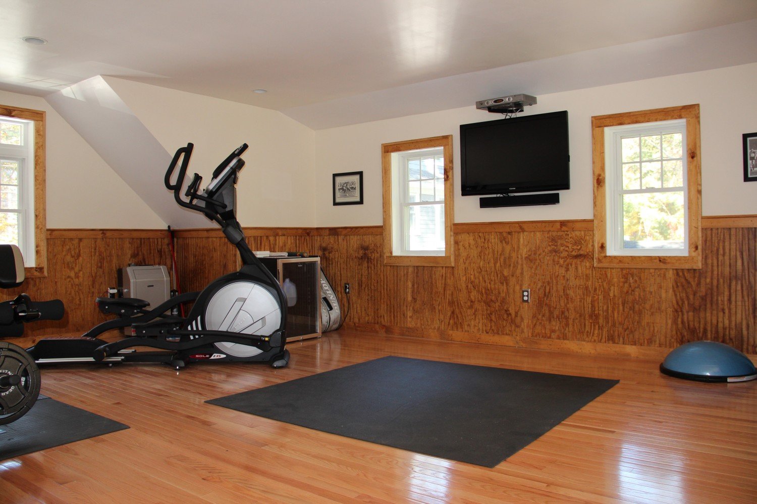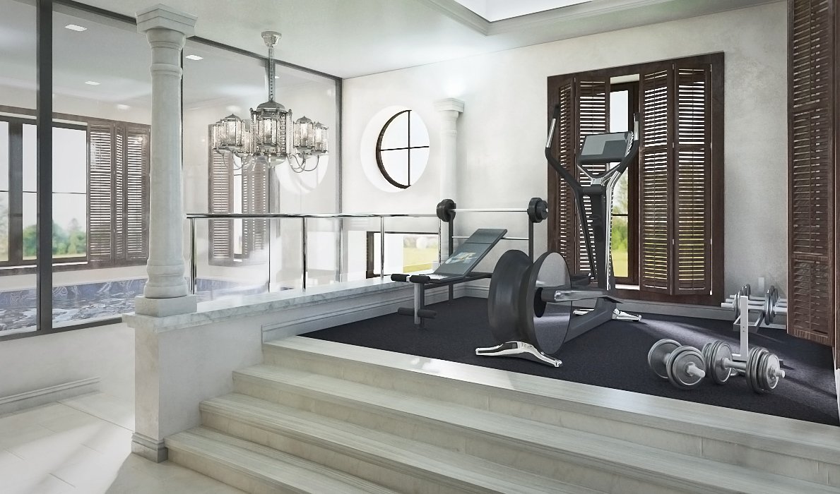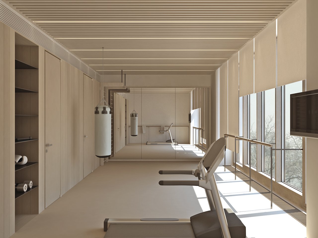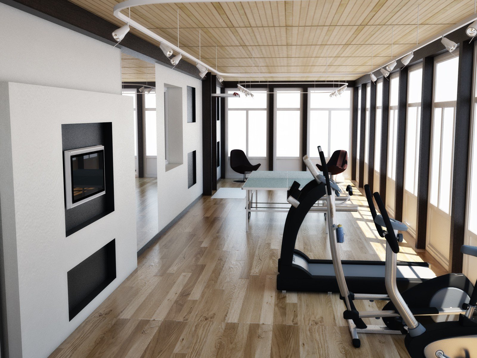 Una opción ideal para un gimnasio privado es una habitación separada con un área de más de 10 metros cuadrados con buena ventilación y grandes ventanas. El flujo de aire adecuado es la clave para el bienestar durante los entrenamientos de cardio. Es necesario un alto nivel de luz natural para aumentar la eficiencia, mejorar el estado de ánimo y prevenir situaciones traumáticas.