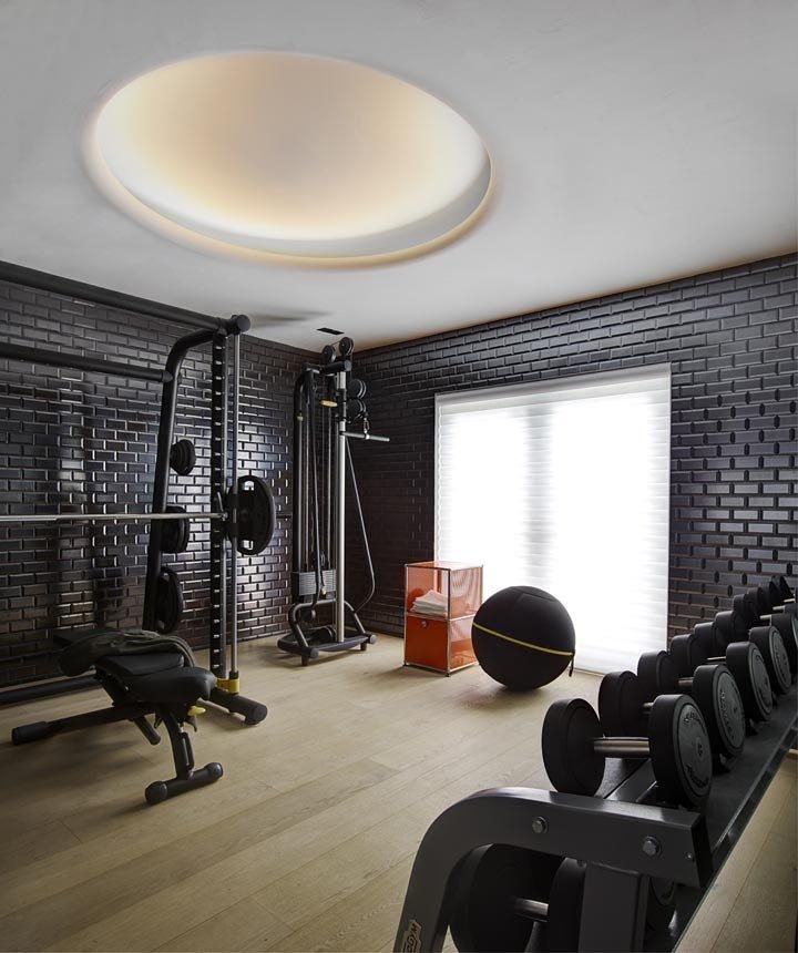 La zona de entrenamiento en el gimnasio en casa puede contener simultáneamente equipos para trabajar en grupos musculares específicos y equipos cardiovasculares.Esta sección se puede combinar con una zona de equipos eléctricos y pesas libres para ahorrar espacio;