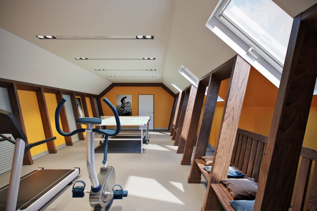 Al equipar el ático como un gimnasio, debe cuidar el aire acondicionado. Debido al calentamiento del techo, esta parte de la casa generalmente se caracteriza por una temperatura elevada del aire.