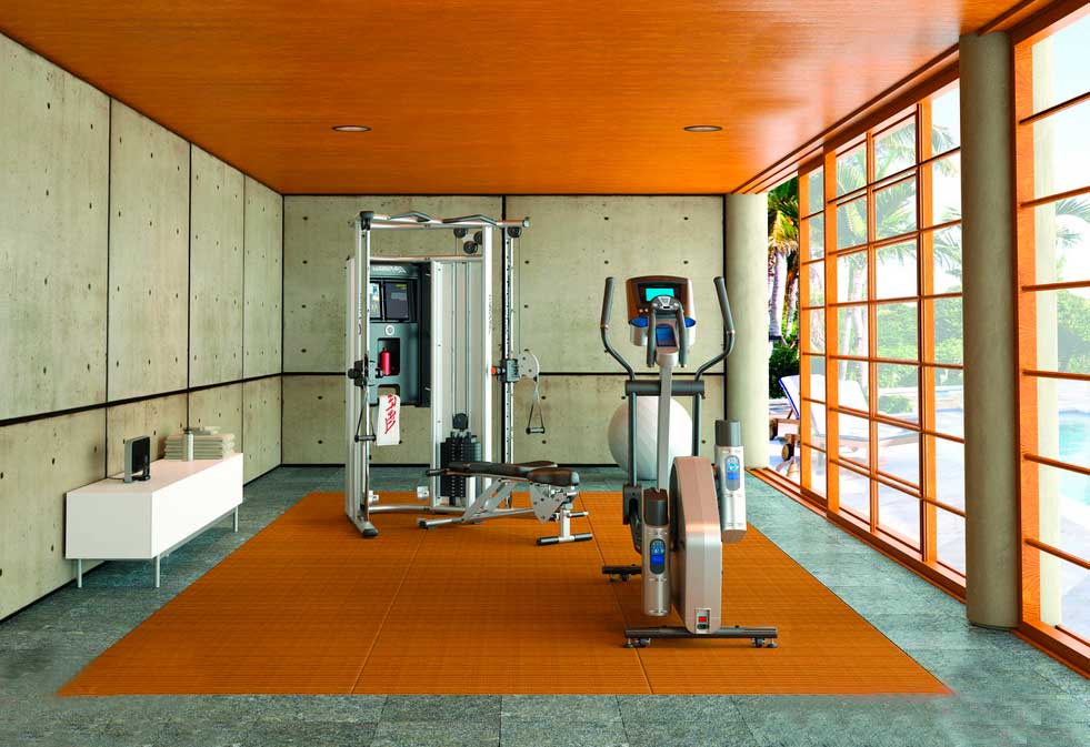 Los suelos de madera no son adecuados para el futuro gimnasio. No podrán proporcionar la absorción de ruido necesaria y perderán para siempre su apariencia estética si accidentalmente caen sobre ellos.