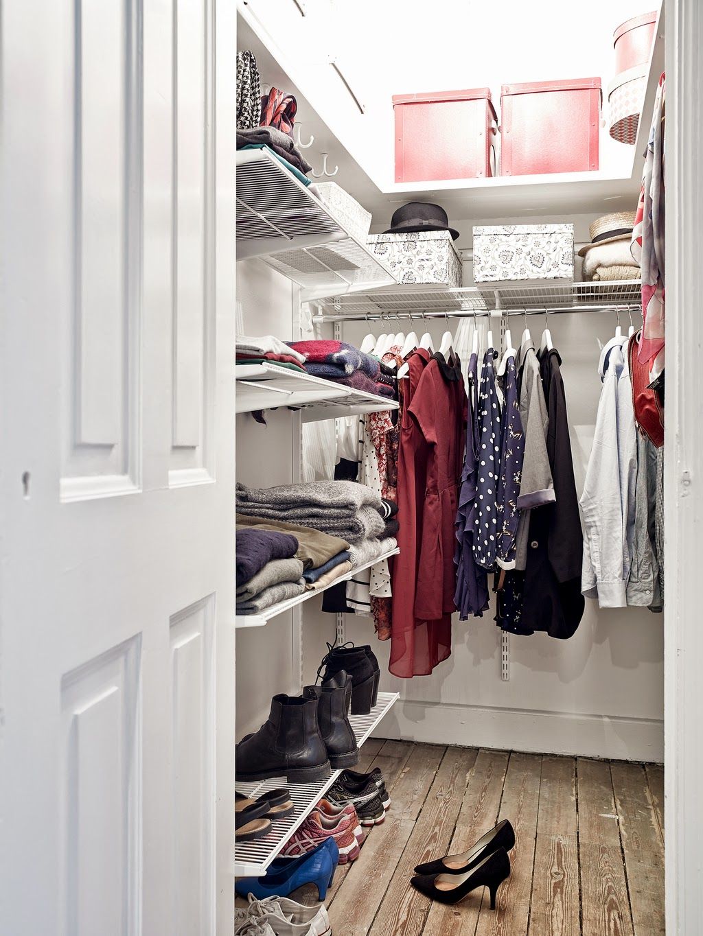 Los artículos de diferentes personas se guardan mejor por separado. Se recomienda guardar los zapatos sin cajas. Debes deshacerte de las bolsas de regalo con artículos pequeños. La ropa se clasifica por categoría (camisetas, suéteres, pantalones, ropa de abrigo, zapatos), cada uno de los cuales es variado (zapatos, zapatillas de deporte, zapatillas).