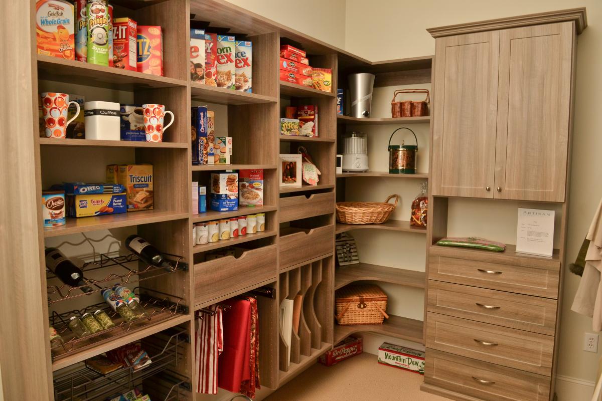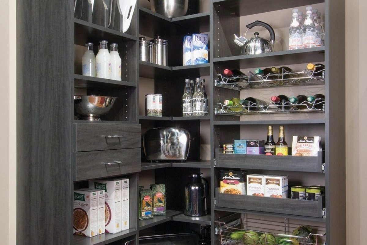 La despensa a veces se hace parte de la sala de estar. La forma en este caso es lineal, en forma de U, en forma de L o triangular. En el dormitorio, por ejemplo, puede organizar una partición o cortina, para no violar la integridad del interior. Como alternativa, considere combinar con un armario. En una gran sala de estar con varias áreas, el armario se verá muy orgánico. La oficina hará frente al papel del espacio debajo de la despensa de ninguna manera peor. Y si la casa tiene un ático, será la mejor opción. En los apartamentos tipo estudio, el espacio interior a veces se explota como un mini almacén. En la cocina, los nichos se usan como despensa, y si no hay huecos en la pared, agregan un armario y arreglan lugares para colgar objetos. En casas grandes, la despensa de la cocina se encuentra en la esquina abierta. Al mismo tiempo, almacenan electrodomésticos, utensilios de cocina, especias.