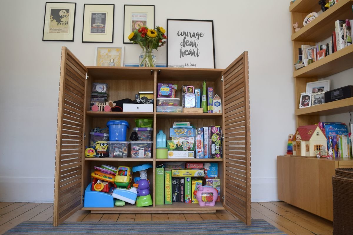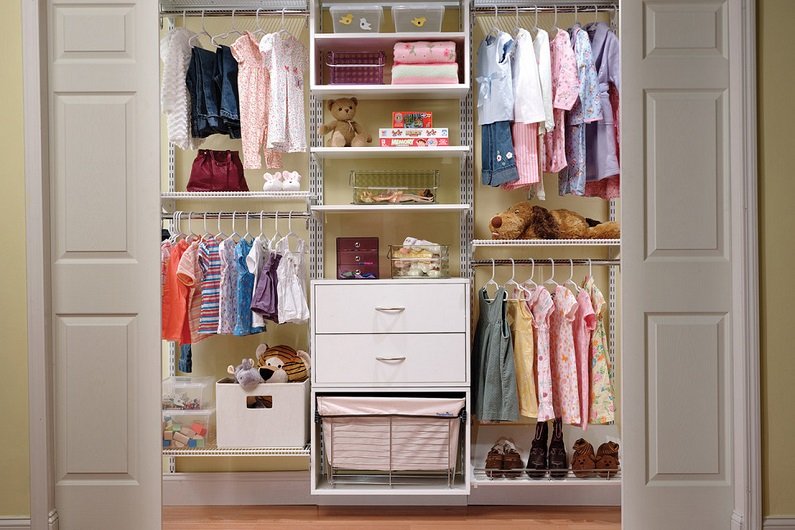 Los juguetes de los niños se acumulan en pequeñas pilas con el tiempo, y los niños no quieren limpiarlos o no tienen tiempo para desmontarlos. Luego, en la despensa debe encontrar un lugar para la ropa de los niños. Parte de las cosas transferidas, a su vez, liberará espacio para juguetes. Después de los reordenamientos, mantener el orden será más fácil. Otra forma consiste en ampliar las oportunidades de almacenamiento en el vivero. Los juguetes deben mantenerse en los niveles inferiores en varios contenedores. Grande: un lugar debajo de la cama. No será difícil para un niño encontrar y obtener lo que necesita.