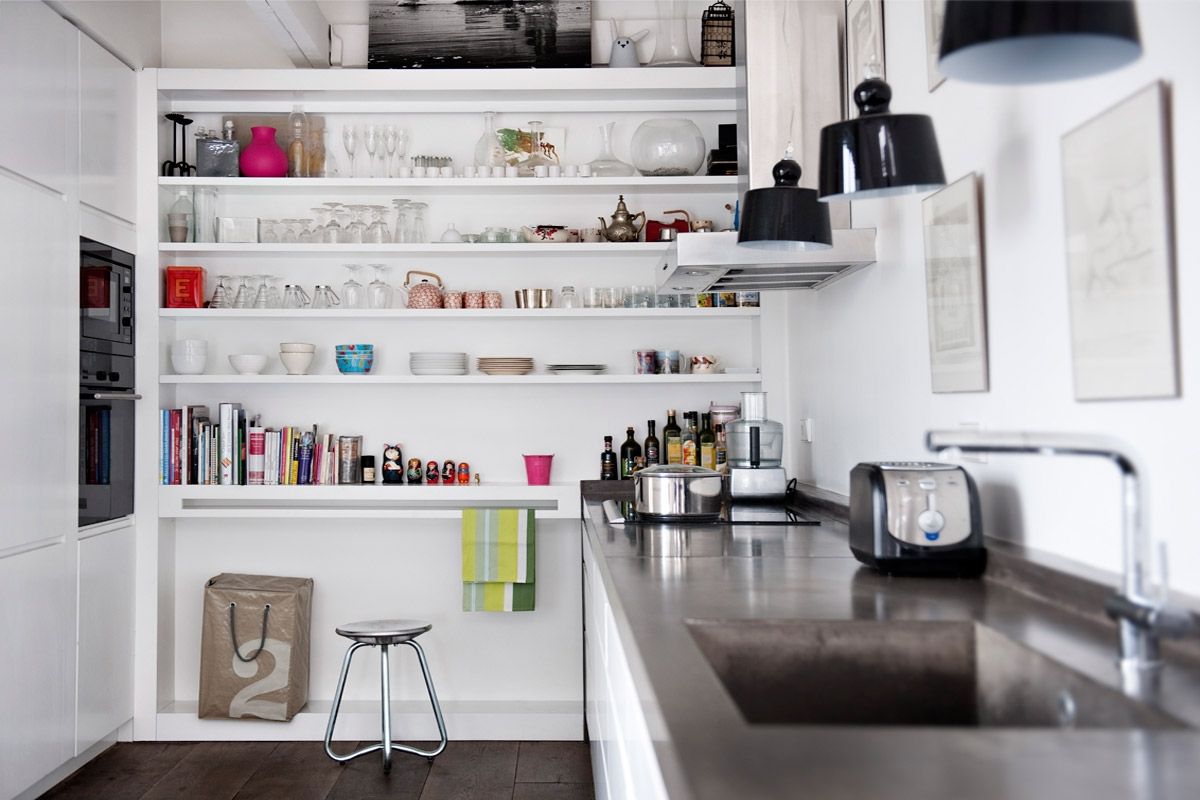 En viviendas de grandes dimensiones, también está abierto, a veces sobresale en la pared. Una de las opciones de diseño más rentables es combinarla con un armario. Si el apartamento es pequeño, entonces es mejor organizar una despensa abierta en la cocina, al mismo tiempo que libera parte de los utensilios de cocina. Un armario en la esquina está diseñado en un pequeño taller. Si la casa tiene una oficina, entonces seguramente habrá un lugar adecuado para almacenar cosas sin importancia.