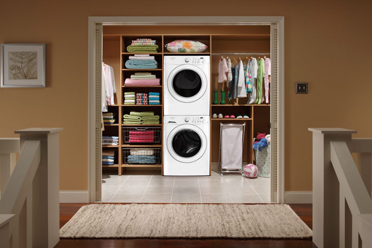 Se puede agregar un lavavajillas a las lavadoras. Para que la opción sea posible en principio, las comunicaciones deben ubicarse a una distancia accesible de la mini lavandería. Técnicamente, hay dos opciones: dos lavadoras cerca de la pared o una en la otra y estantes en el lateral.
