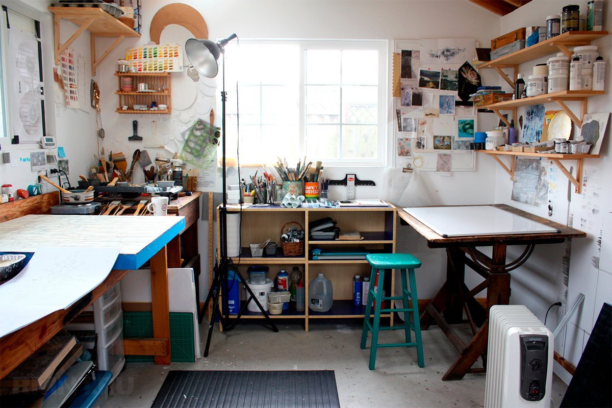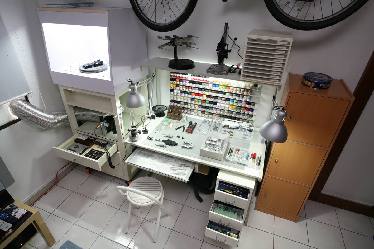 Las premisas de destino generalmente se asignan para estas necesidades. El taller de despensa será necesario para representantes de algunas profesiones y amantes de la costura. En el espacio del armario, se instala una mesa para trabajos pequeños. Cerca hay que mantener una estación de soldadura y un conjunto de herramientas. Debe obtener contenedores con secciones para hardware. Todavía necesita proporcionar ventilación, si no está disponible. Parte de la pared debe dejarse para acomodar una tabla grande.
