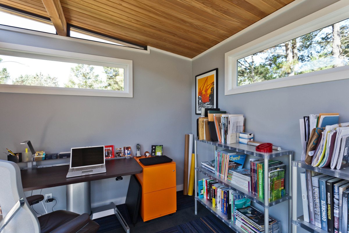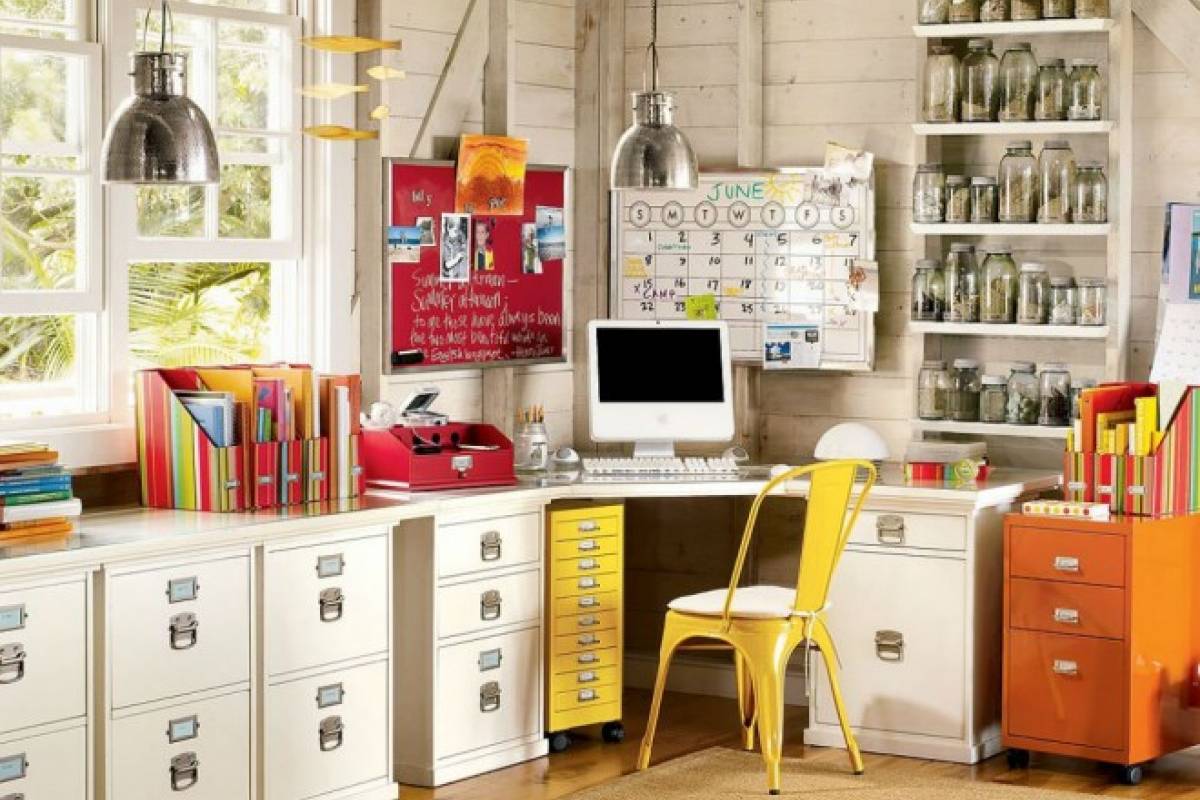 Un cuarto de servicio con una pequeña carga de trabajo es un gran lugar para colocar una computadora portátil, equipo digital y libros. Se entiende una habitación pequeña, preferiblemente sin puertas. Por ejemplo, un armario abierto frente a la ventana. Sin embargo, si la bóveda se encuentra en la sala de estar, puede abrir la puerta de forma segura y sentarse en su escritorio. En el interior deberá instalar un dispositivo de iluminación. En la despensa, a su discreción, debe usar organizadores de oficina, tableros magnéticos, bolsillos.