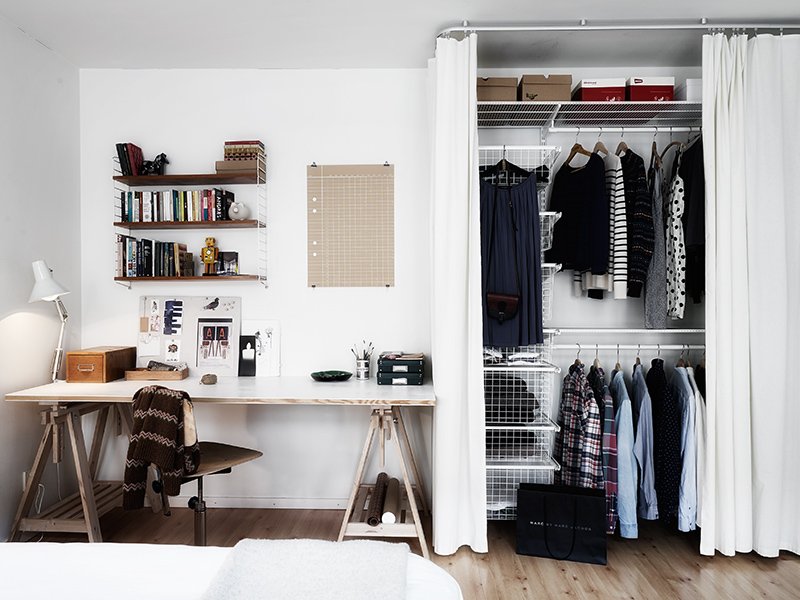 No es costumbre colgar la ropa en una despensa cerrada, ya que esto estropeará su olor. En consecuencia, no hay necesidad de asignar ningún otro lugar además de los estantes. Si hay nichos en el hogar, debe usarlos al máximo. Además, si los huecos están presentes en diferentes habitaciones, los objetos se pueden distribuir de acuerdo con su propósito previsto. Otra forma es usar un armario deslizante gratuito. Luego, los objetos ocuparán un plano y la necesidad de un espacio vacío entre los estantes desaparecerá. Además, en el armario hay un lugar para perchas.Y también: comodidades para colocar una tabla de planchar, cajones, ganchos, etc. La puerta del compartimento se puede dejar abierta para mantener la circulación de aire al nivel deseado. En un edificio de dos pisos, es mejor colocar un armario en el pasillo debajo de las escaleras. Si el gabinete aún no se ha comprado, preste atención a los modelos con puertas transparentes.