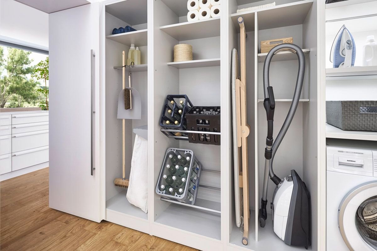 La despensa a veces se transforma en un taller. En los apartamentos más pequeños, una mini-oficina está hecha con acceso rápido a todas las computadoras y equipos digitales. Con relativa frecuencia, se coloca una lavadora en la trastienda; para algunos, esta opción será económica, para otros, inaceptable.