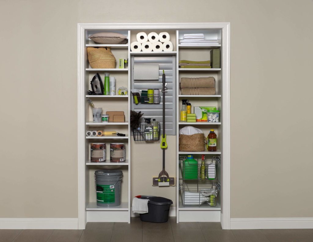 En la misma despensa, puede guardar diferentes cordones, cables, uniformes, kits de reparación, electrodomésticos, incluso sin usar temporalmente. Todos los accesorios antiguos también toman forma en algún lugar cercano: cerraduras, cremalleras, botones, botones, pestillos. Para la disposición de la despensa, los sistemas de almacenamiento de la tienda son útiles. Los elementos más insignificantes se atribuyen mejor al sótano o al garaje.