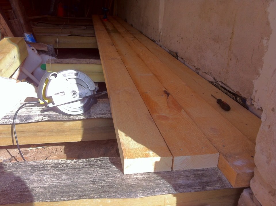 luego el material del techo se corta en tiras estrechas, se sujetan a los extremos de las tablas, troncos, lugares de contacto directo con el concreto;